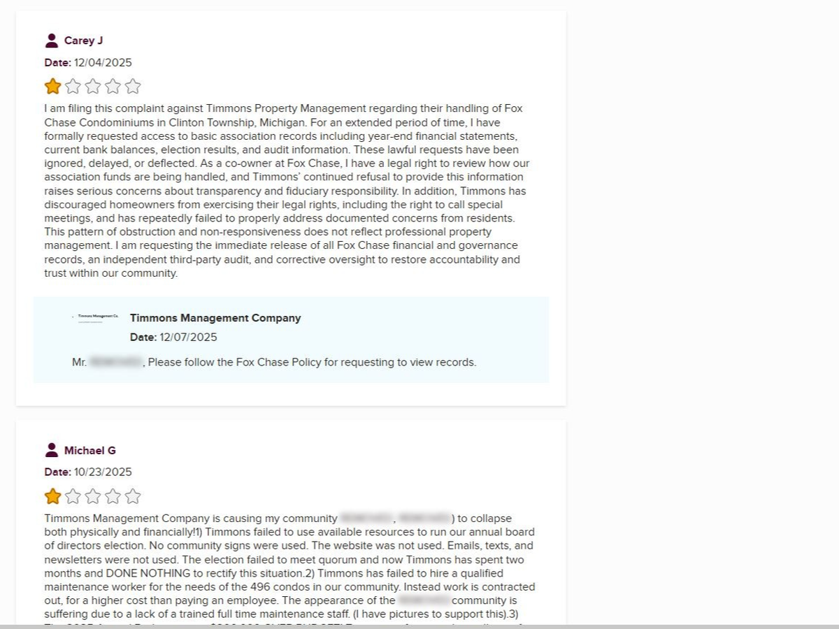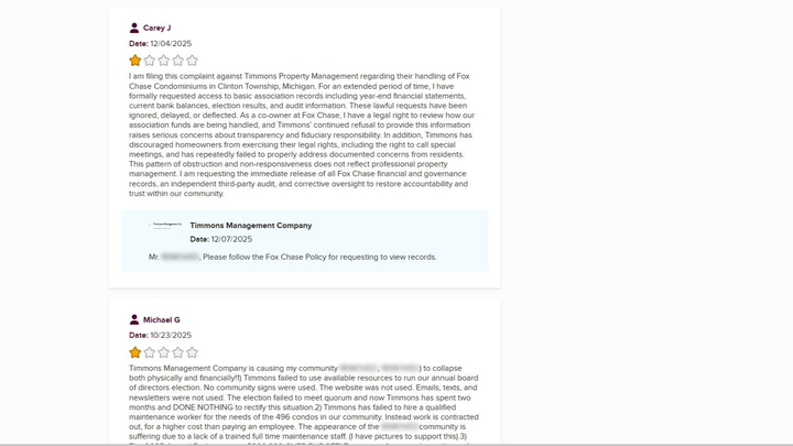 As a condo owner, I have watched as our board of directors and the management company, Timmons, have worked together to earmark a large sum of our HOA's money for legal representation in the 2026 budget. Unfortunately, despite these resources, we have not made any real progress toward updating our bylaws, finding a realistic solution for the quorum issue, or enforcing transparency regarding our finances. The lawyer hired by the HOA has provided some assistance, but has not effectively impacted these concerns, leaving me with no choice but to hire my own attorney using my personal funds.