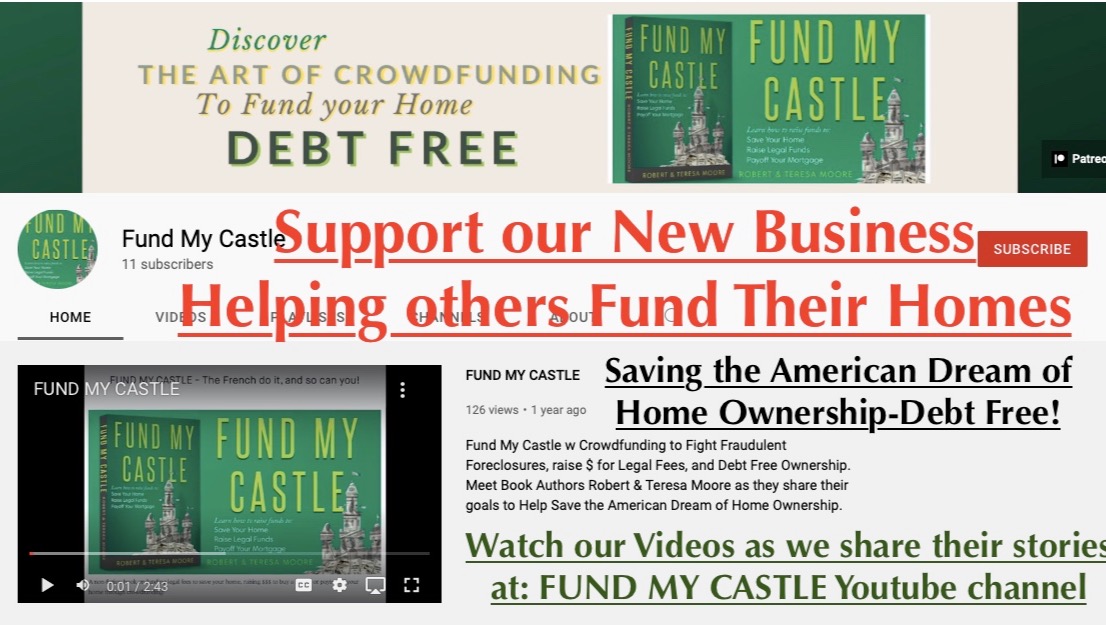 As I come out of retirement, I am now ready to Launch our FUND MY CASTLE CROWDFUNDING Program to help combat the SECOND ROUND OF FORECLOSURE CRISIS.