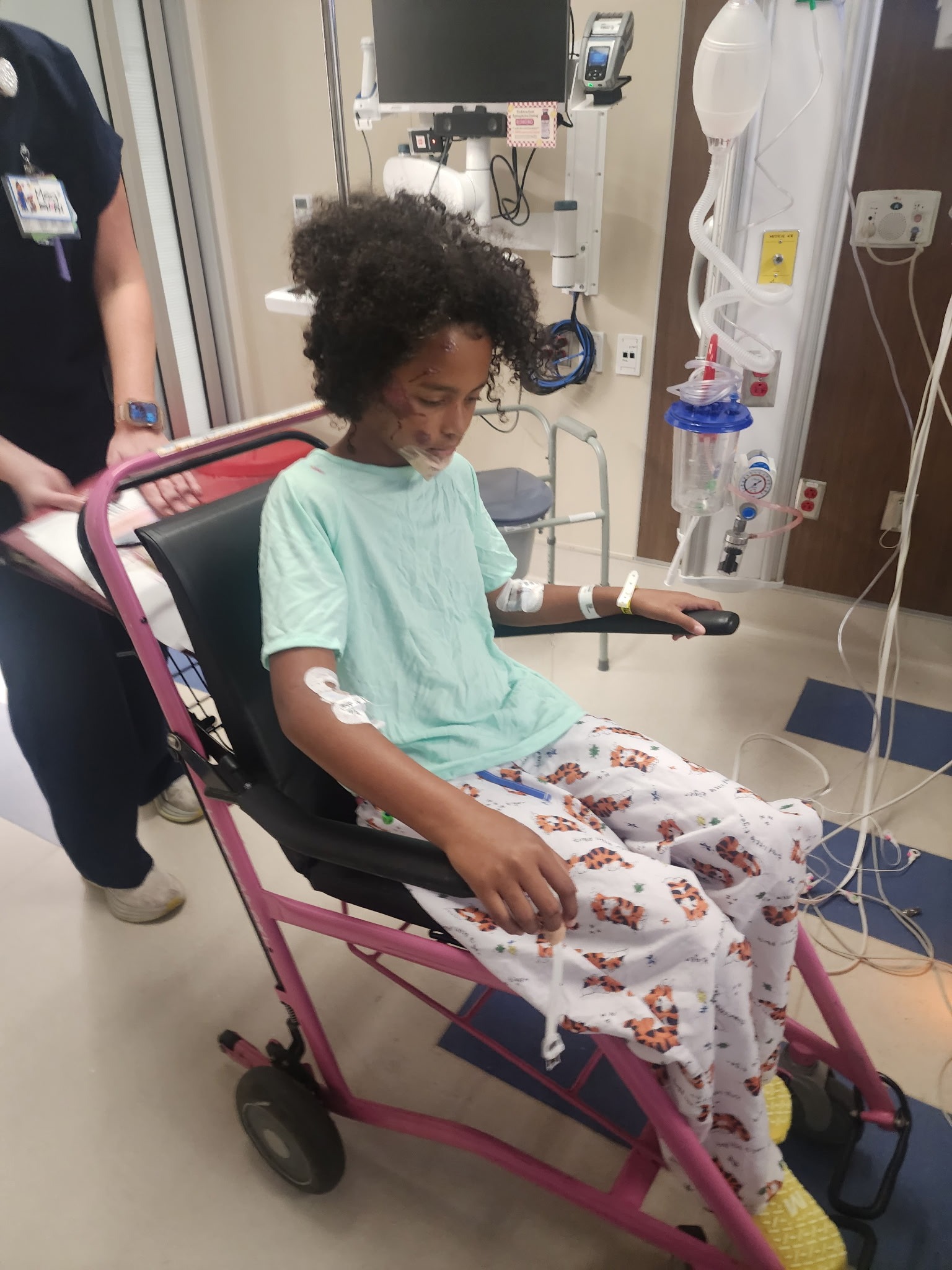 On October 12, 2025, my innocent ten-year-old daughter was outside playing with her friends. She was playing chase with two of her friends in the neighborhood when she was struck by a car. She was rushed to OU Children's Medical by ambulance, underwent many CT scans, X-rays, EKG, and other tests. She spent one day in ICU on continuous oxygen and IV before being moved upstairs where she spent another 5 days. Her lungs were bruised from the incident. It was nothing more than an act of God that her injuries were not more severe, and she has healed at miraculous speeds.