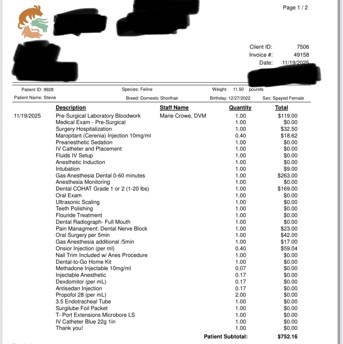 Insurance was my only possible route to afford this and unfortunately ended up costing more in the long run. I paid for 3 months of insurance at $75/month (dental tier included). The procedure ended up being $750 total. Insurance determined that the minor gingivitis my cat had was a preexisting condition and refuses to pay for anything except part of the blood test, giving me $75 total.
