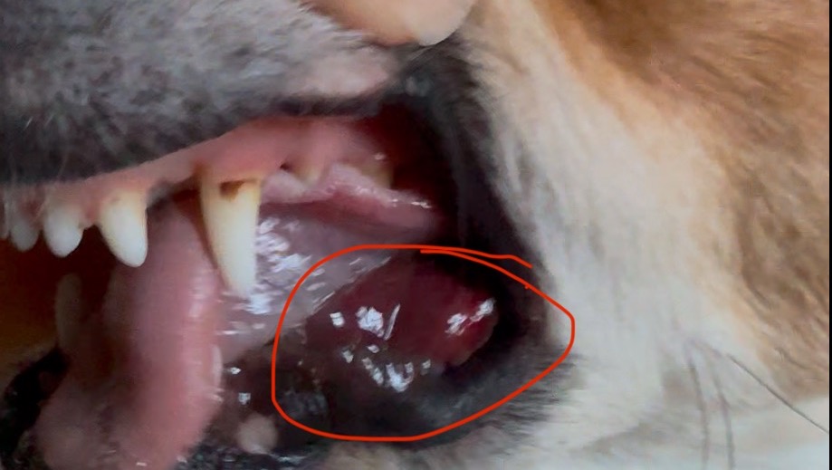 This photo was taken the morning before Stephanie noticed the growth inside Cujo's mouth.