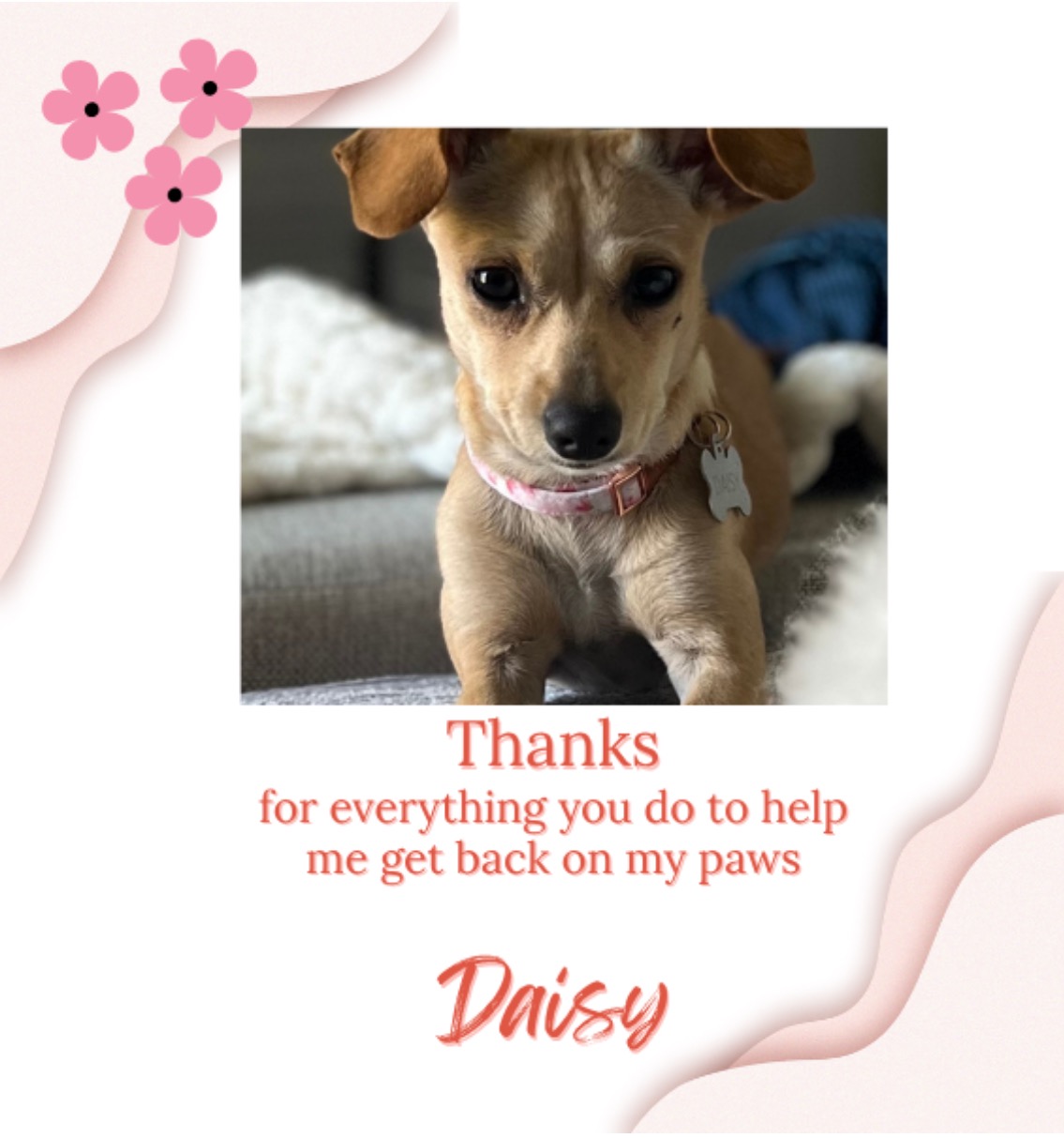 Daisy is my 2 1/2-year-old dog who means the world to me. She was recently hit by a car, and the experience has been heartbreaking. Daisy is now in the ICU, where she’s receiving around-the-clock care from a dedicated veterinary team. She is out of the woods and can do the basic functions such as walking. She’s on pain medication, brain trauma injury meds, nausea medicine, and several other treatments to help her stabilize and recover. It’s been incredibly difficult to see her in this condition, but I’m doing everything I can to support her through this crisis. The costs for Daisy’s emergency care are overwhelming. Every day in the ICU brings new expenses for her medications, monitoring, and specialized attention. I’m reaching out for help to cover these immediate medical bills so Daisy can continue receiving the care she urgently needs. Your support will go directly toward her treatment and give her the best chance at a full recovery. Thank you for considering helping Daisy during this critical time. Every bit of support means so much to our family and Daisy.