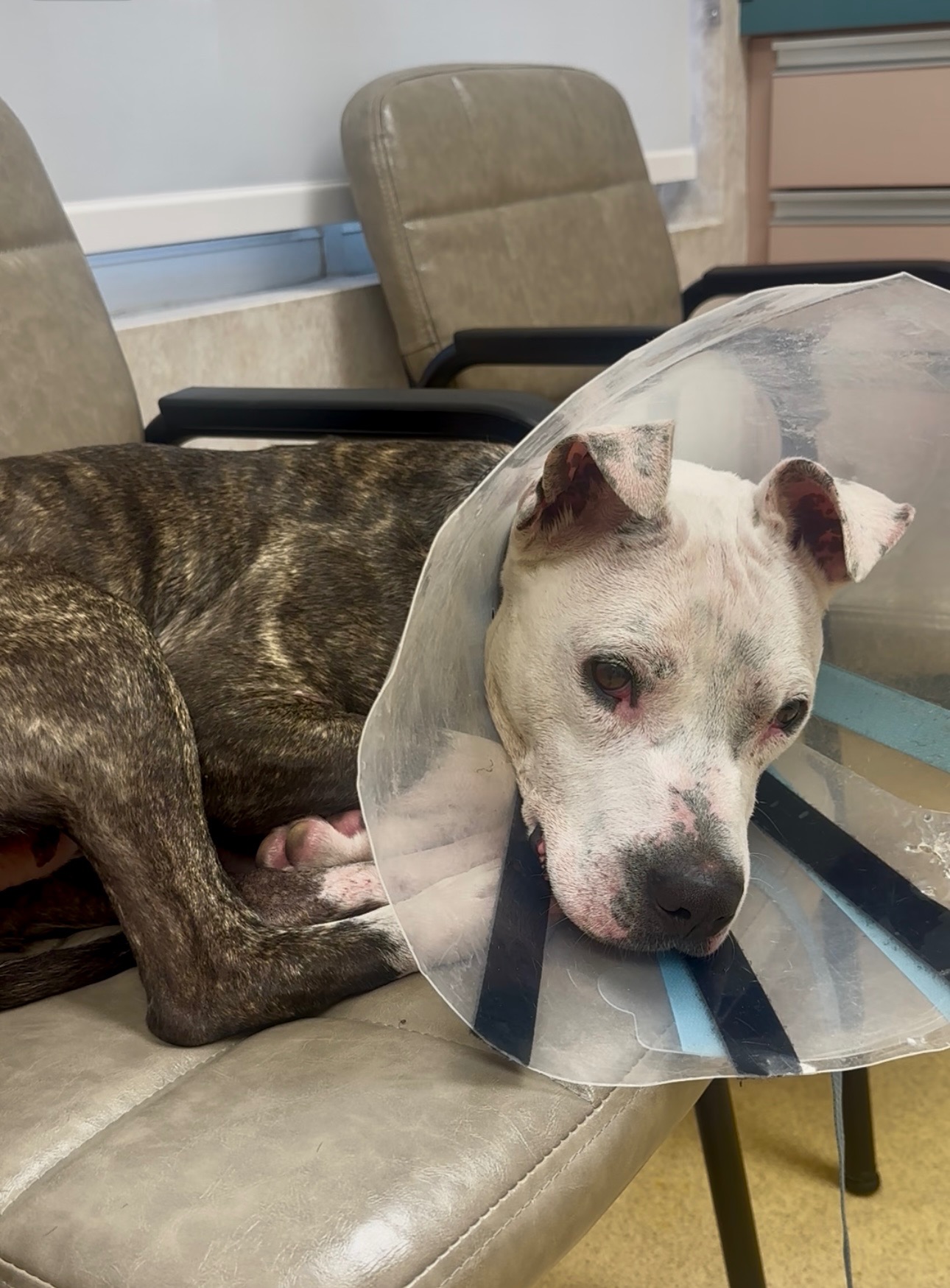 In addition, Dallas had been in boarding at Doggies Gone Wild, where his advocate paid for two months in advance to keep him safe and cared for while he heals.
