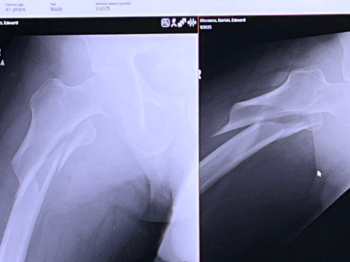 On 02/24/25, I had an accident while I was doing a favor for a friend of mine, and the result of the fall left me with a broken right femur and a severely broken right wrist.