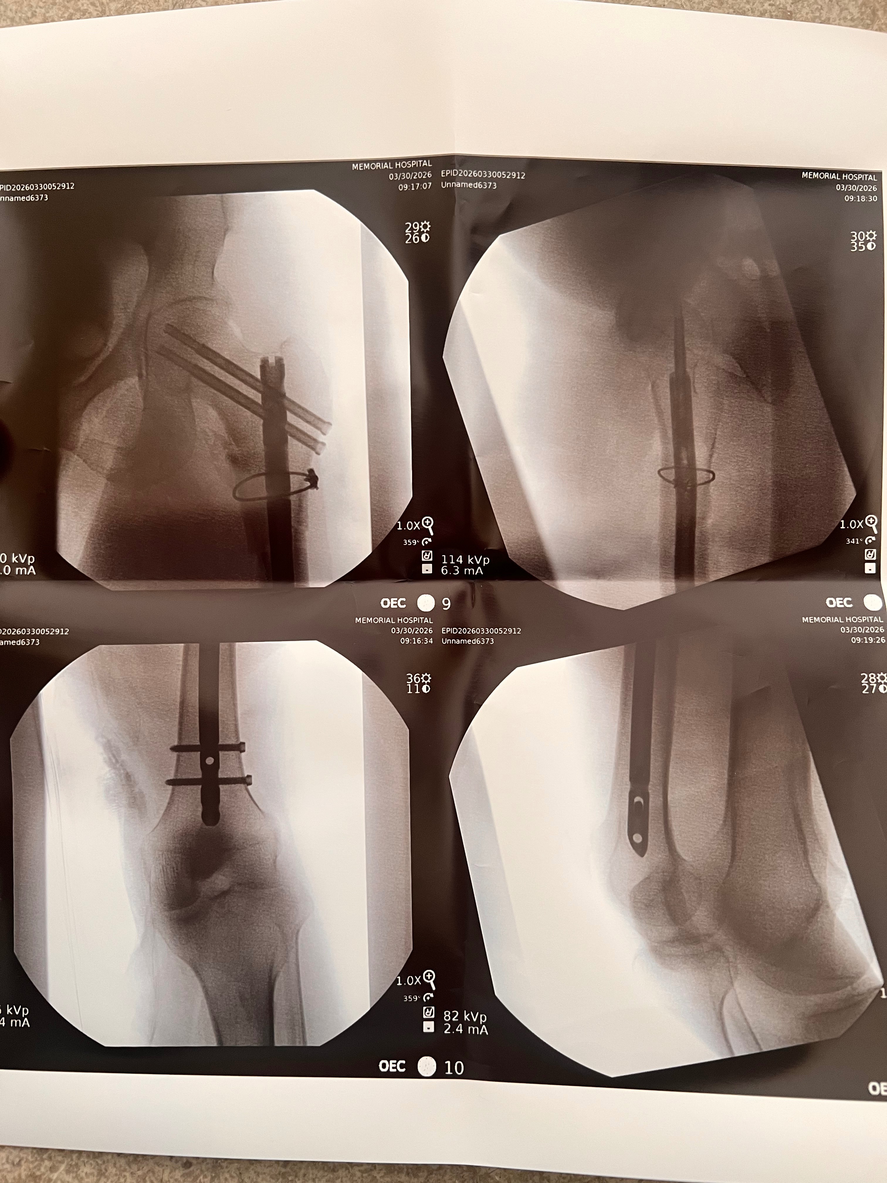 He successfully underwent surgery to insert a metal rod extending from his hip down to his knee to stabilize the injury.
