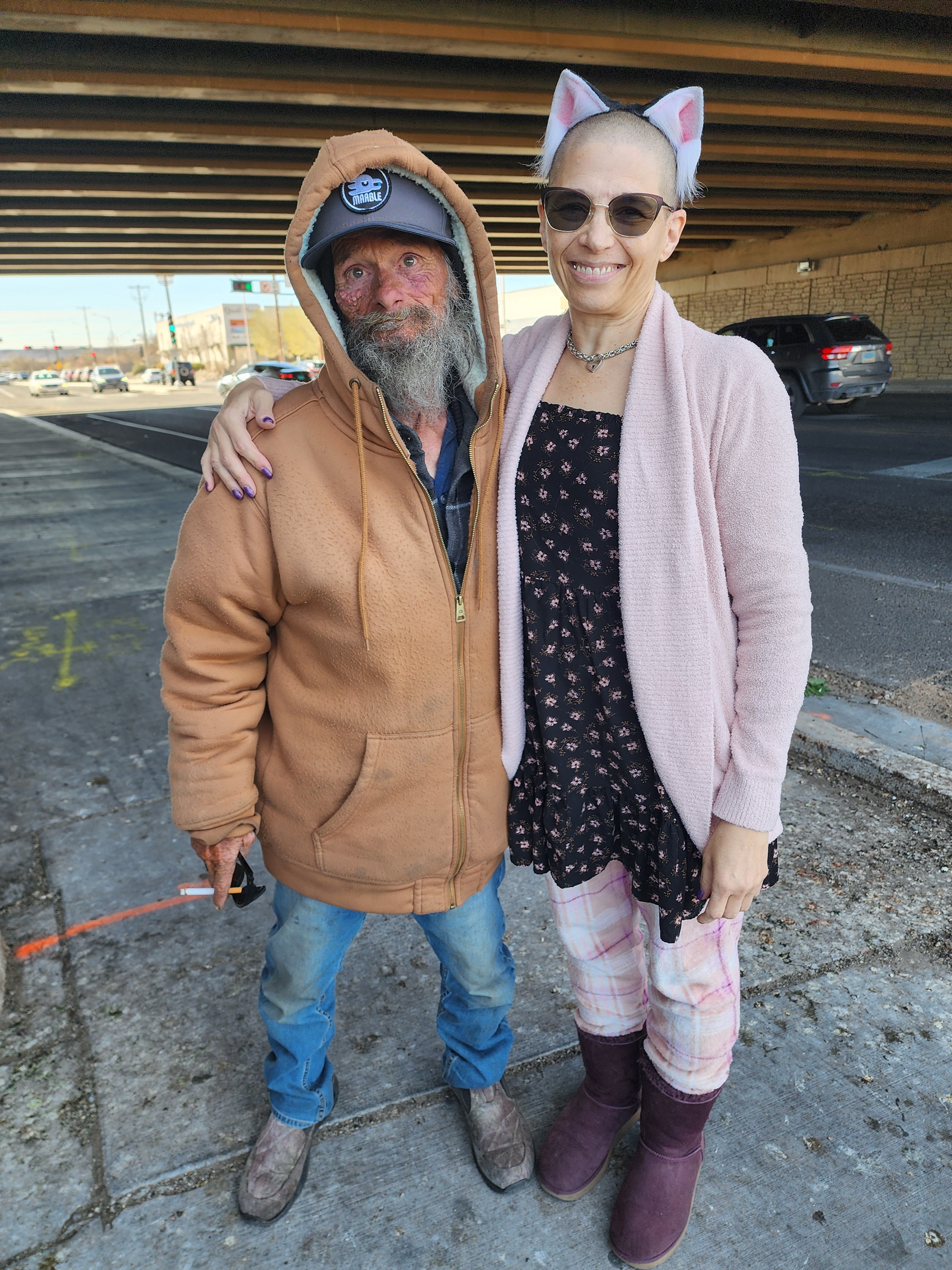 For the past two years, if you’ve driven past our corner in Albuquerque, you may have seen Dave. Trixie and I have become friends with him, we pass by him daily. He’s a nice guy. Articulate, sharp, clever and friendly. He is 72 years old.