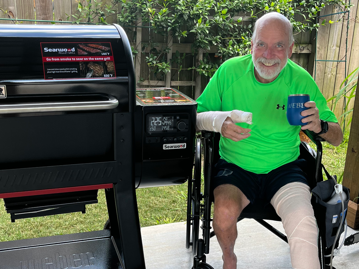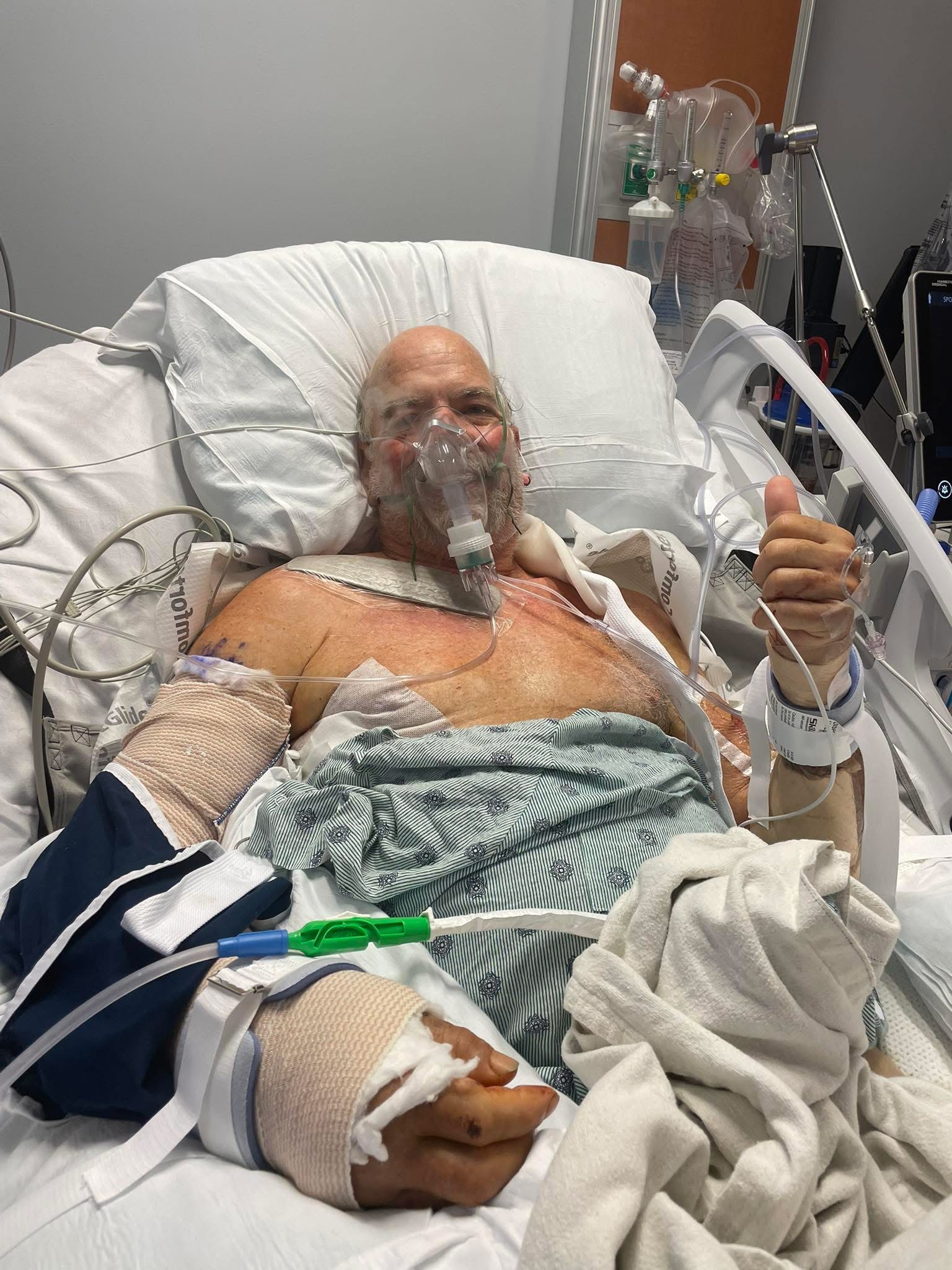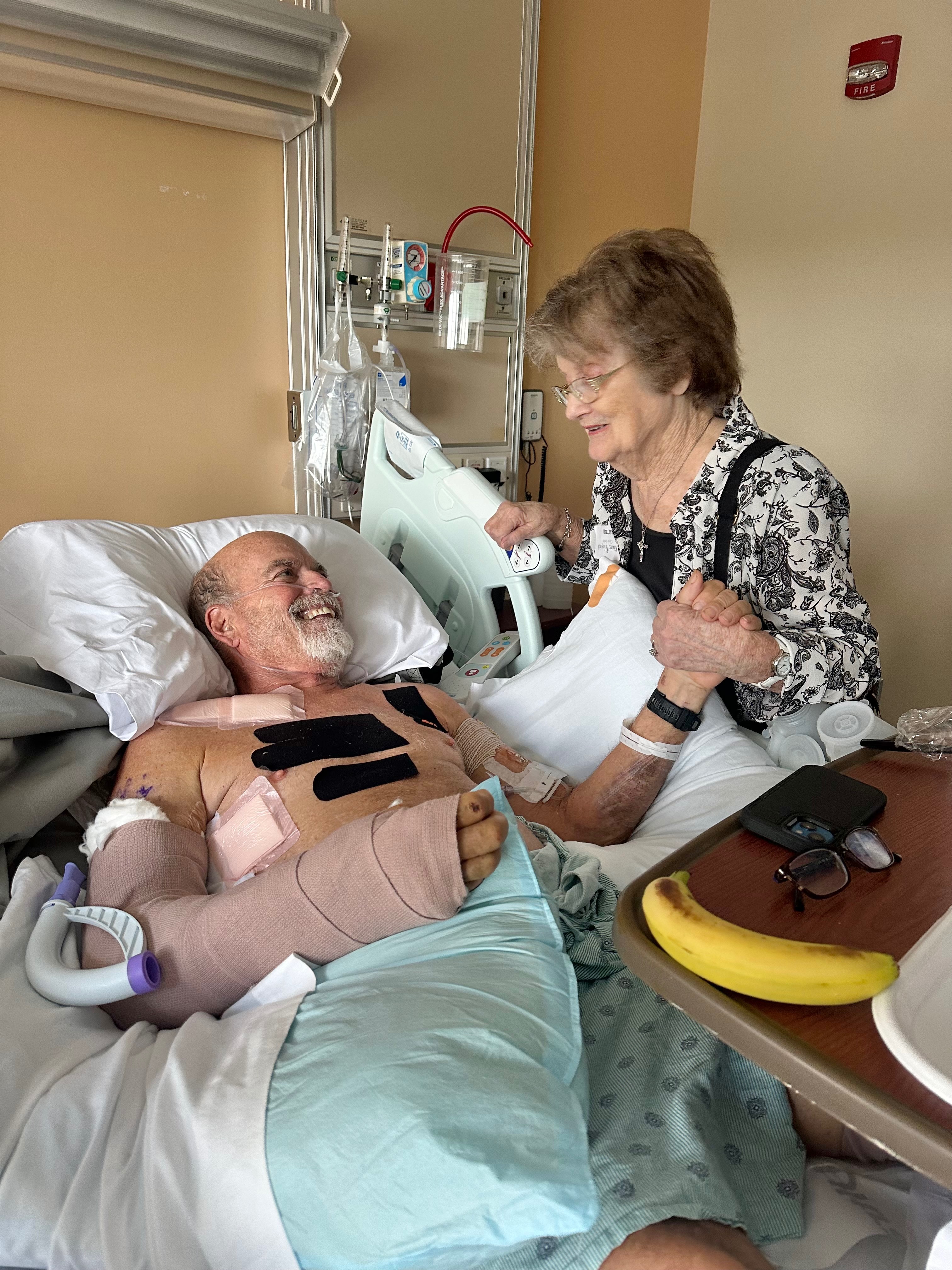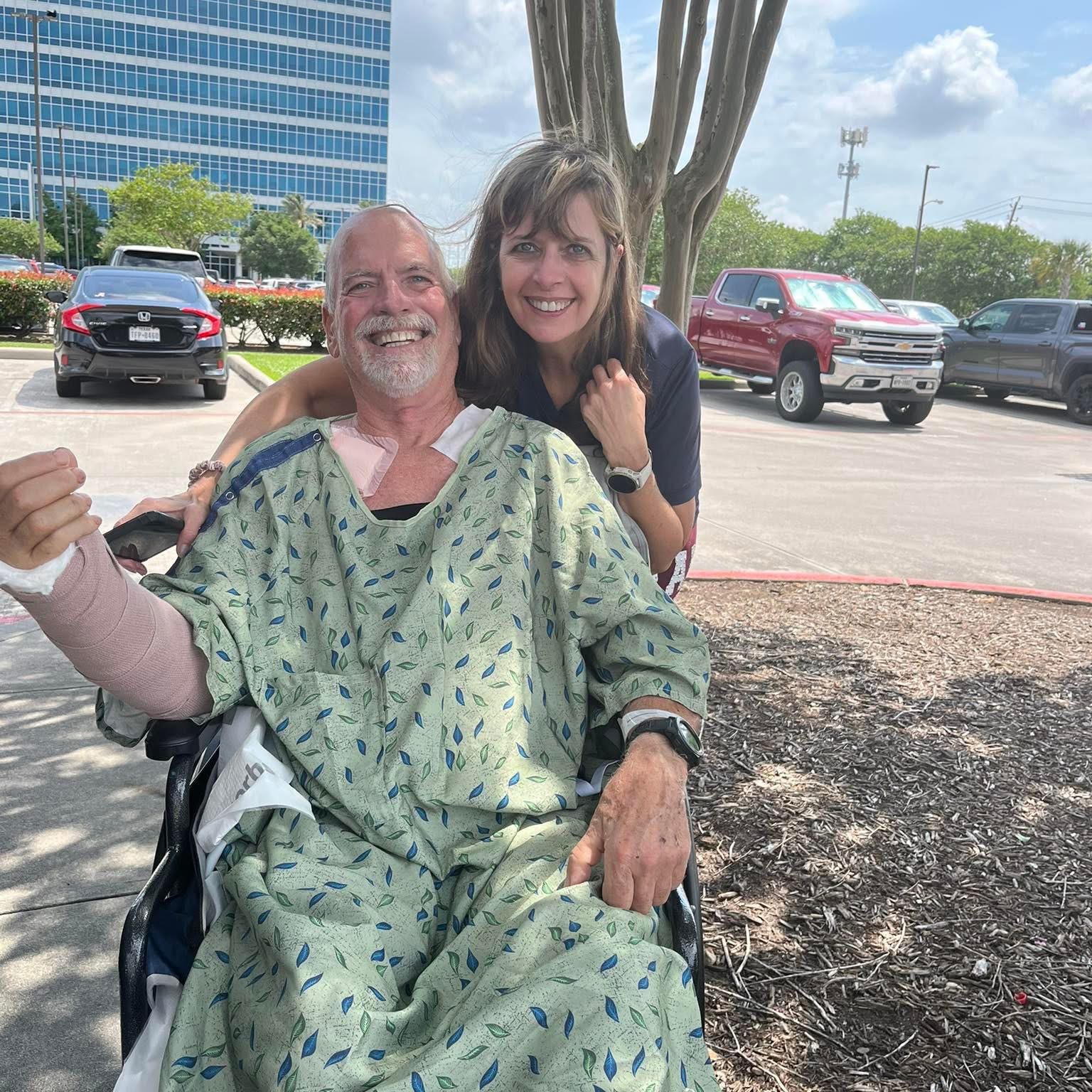 David is home now going to physical therapy 3 times a week. He cannot put weight on his injured leg or use one arm. He is still using the wheel chair but can transfer himself in and out of bed. He is healing every day.