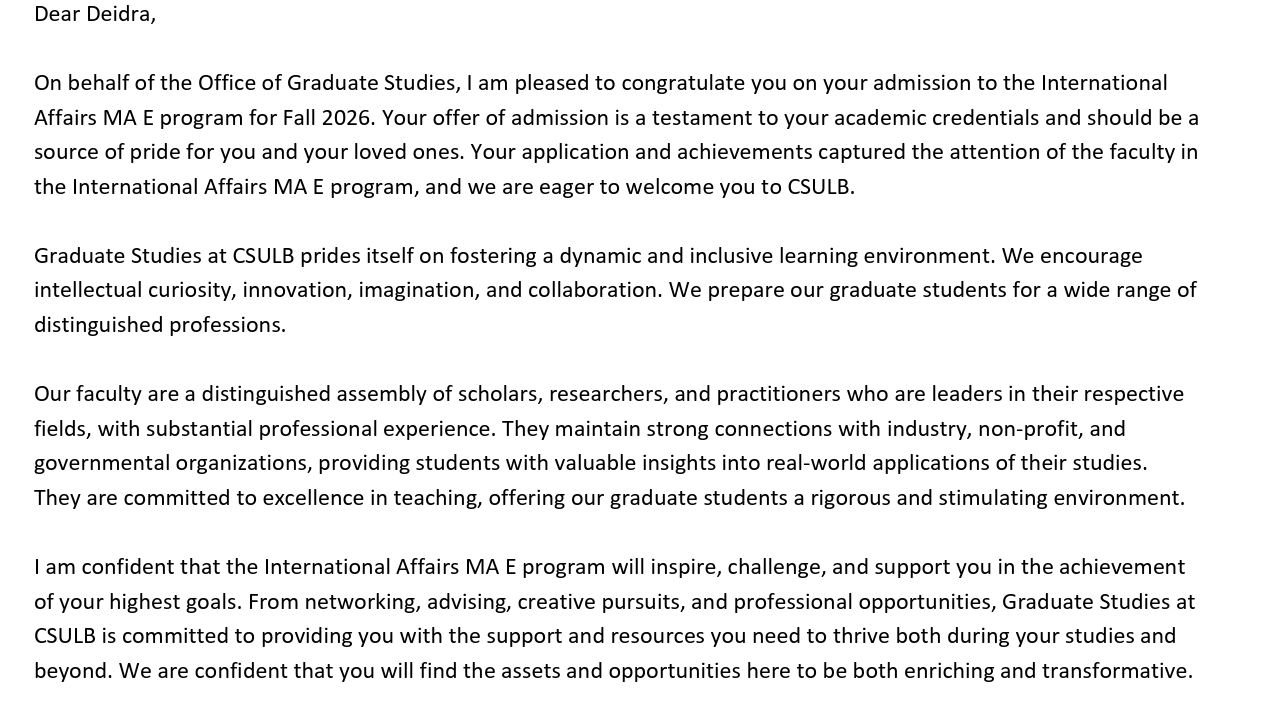 **3/13/26 Update: CalState Long Beach Acceptance...