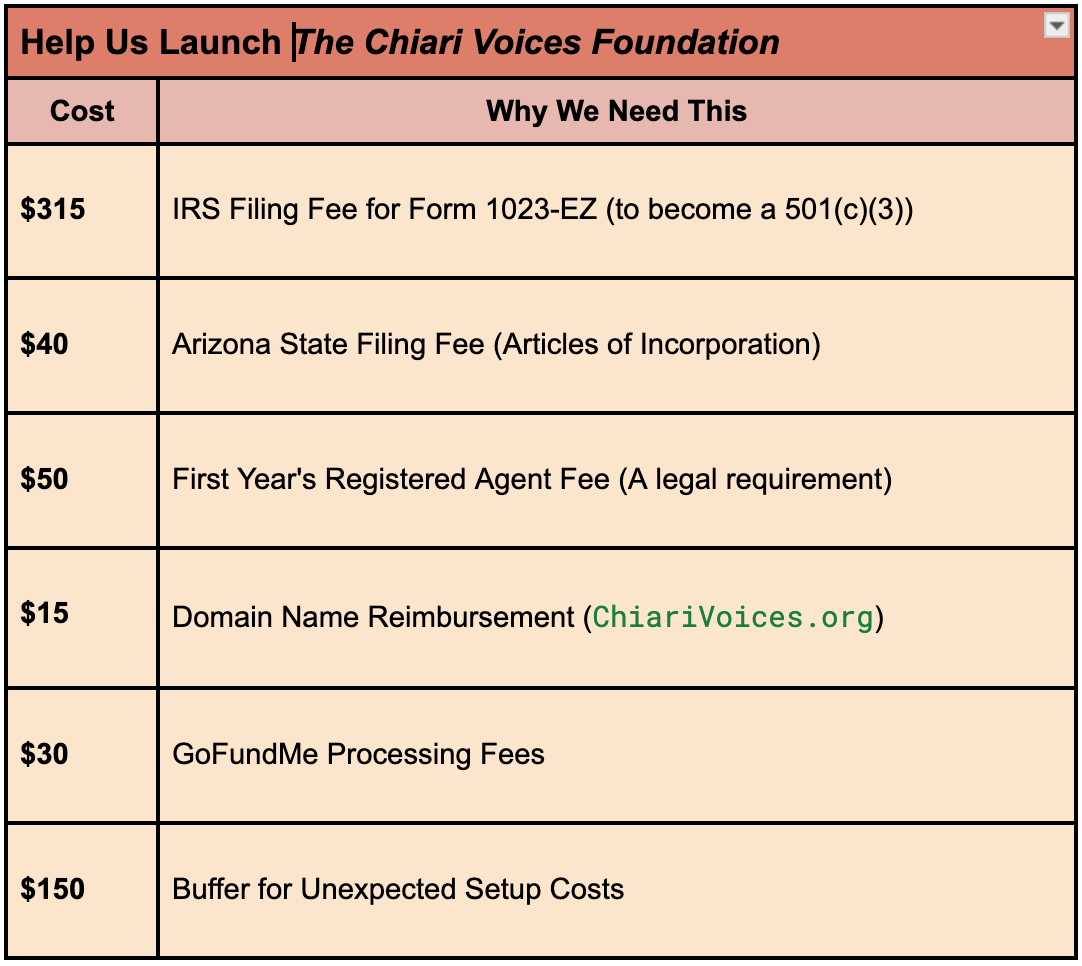 This is why I am creating The Chiari Voices Foundation.