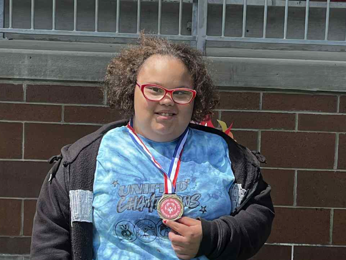 This is Destiny. Destiny was born with Down's Syndrome, but she does not let that define her. She is brave, loving, spunky, wears her heart on her sleeve and isn't afraid to tell you what she thinks. She is a junior at Bonners Ferry High School and loves being a Badger. This girl has participated in cheerleading and dance and has just signed up to participate in the Special Olympics.