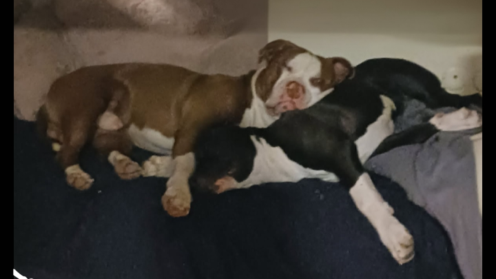 This is Dexter and Baxter, father and son. These two, for the first time ever, attacked each other, resulting in Dexter, tan and white, being rushed to the emergency vet with 18 puncture wounds all in his throat and front legs. Baxter, black and white, had a cracked jaw and four punctures between his eyes and eardrum due to us having to place a metal bar in his jaw to get him to unlock his hold on Dexter's throat. This fight went on for 20 minutes according to our home video. We were lucky enough to break it up, being that we were home and heard the yelps and growls on our Xfinity app. It was the worst thing I've ever experienced. I love my two dogs, and before this incident, they wouldn't hurt even our cats' kittens, let alone each other. No idea what caused the fight other than me screaming for help in the end probably made it WAAAAAYYY WORSE than it needed to be.