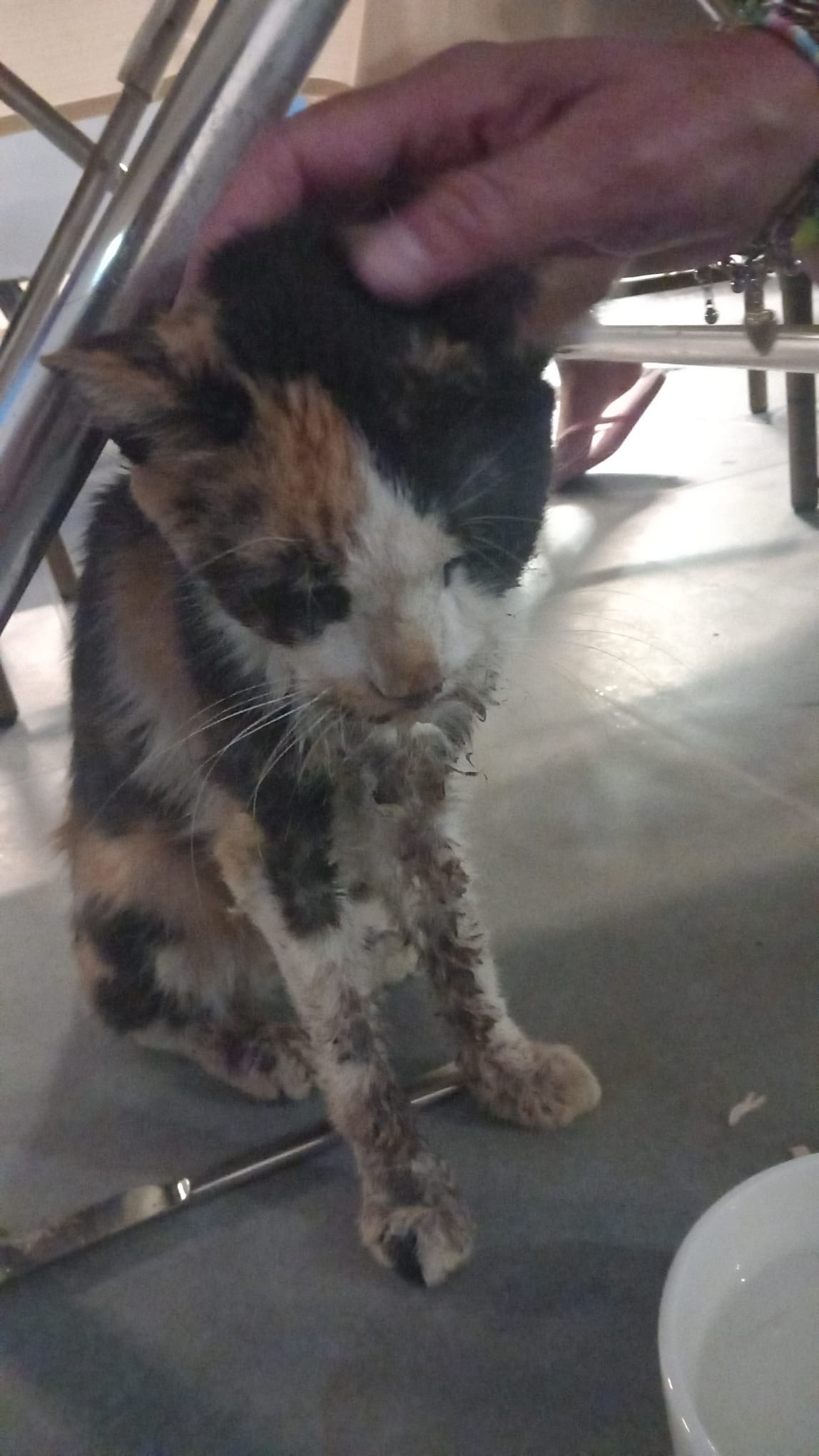 Mijn naam is Claudia en ik help al meer dan 20 jaar zwerfdieren in binnen -en buitenland. Ik heb de meest vreselijke dingen gezien en er soms over gedacht het bijltje erbij neer te gooien. Ik had nachtmerries van degenen die ik niet kon redden. Maar gelukkig zovelen wel en dat motiveert me door te gaan met wat ik wel kan doen en waar ik wel verschil kan maken. Mijn eigen katten uit een Spaans dodingsstation motiveren me iedere dag opnieuw om nooit weg te kijken. Sinds vorige week ben ik in Turkije en op dag 1 vond ik een 6 weken oud kitten op de autoweg. De dierenarts zei letterlijk: " direct betalen of ik gooi hem op straat". Inmiddels is het kitten behandeld en veilig gesteld. Maar daar bleef het niet bij. In het restaurant van het hotel liep een doodzieke kat. Een wandelende zak met botten waar het bloed uit het bekje liep. Niet meer in staat om te eten en zich te wassen. Vandaag was ik in staat op te pakken en mee naar de dierenarts te nemen. De mensen in het restaurant hadden haar al geprobeerd weg te trappen en riepen "bah, bah, bah" naar me. De dierenarts heeft de eerste tests gedaan en die hebben me 500 euro gekost. Nu zijn er nog tests nodig om te bekijken of de interne organen beschadigd zijn. Zo niet kan er een behandeling beginnen waarvoor ze een maand bij de dierenarts moet blijven. Ook zijn al haar tandjes rot en haar kaak aangetast. Alles moet eruit. Dit alles gaat een fortuin kosten. En ik heb het gewoonweg niet liggen. Maar ik ben haar enige kans en na alle ellende en pijn vind ik dat ze die zo verdiend heeft. Ik moet morgen beslissen of ik de behandelingen door laat gaan en voel me er letterlijk ziek van. Haar leventje ligt in mijn handen want niemand anders gaat het doen. Ik heb er dit keer dus simpelweg hulp bij nodig..