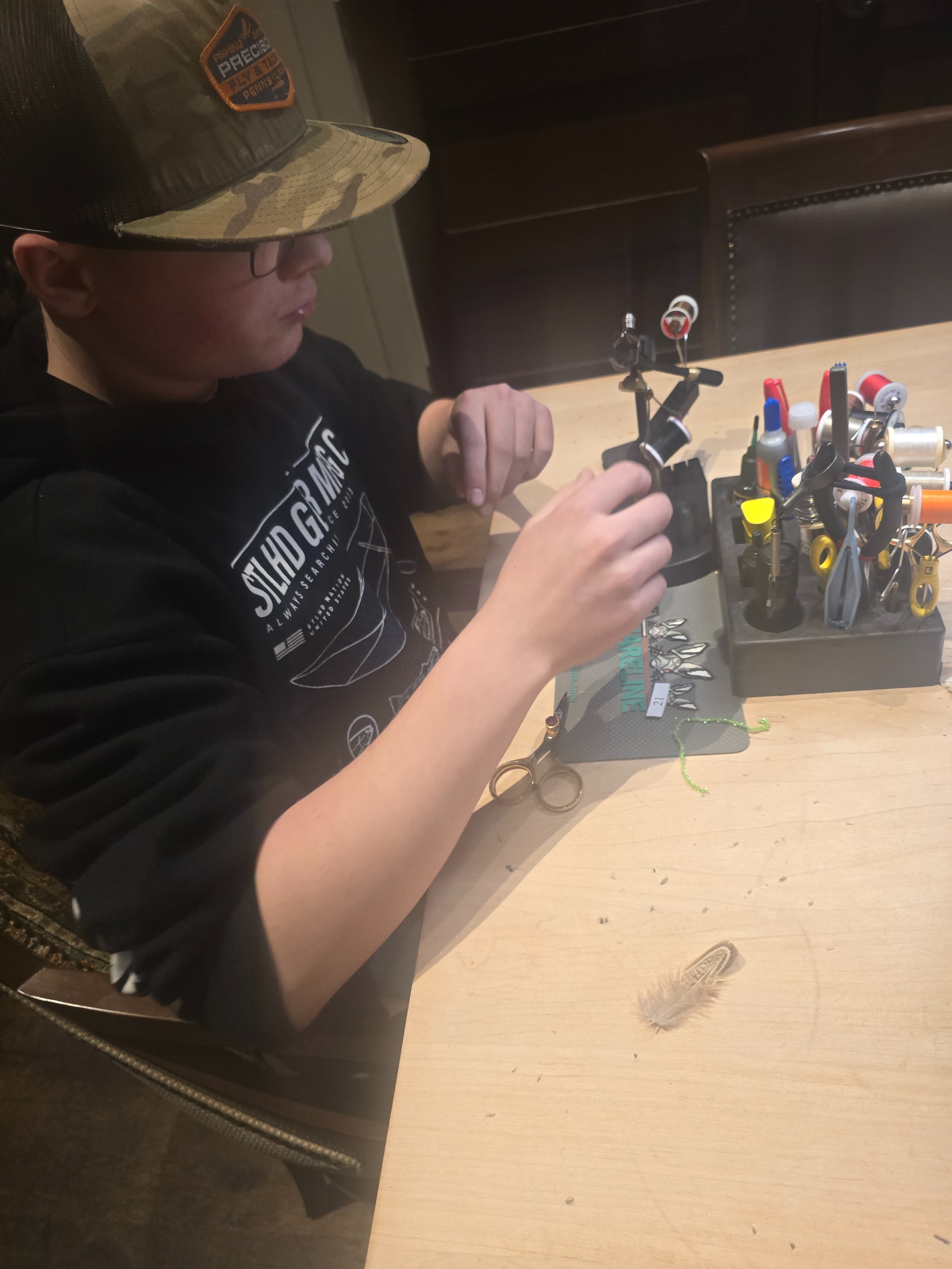 I tie my own flies and learned next to my late friend Dennis. Because of him, I carry on the passion to tie my own flies, and I like to share them with others. When I fished in Erie, PA, I was catching steelhead left and right, and many guys asked me what I was using, so I showed them my fly and handed them out.
