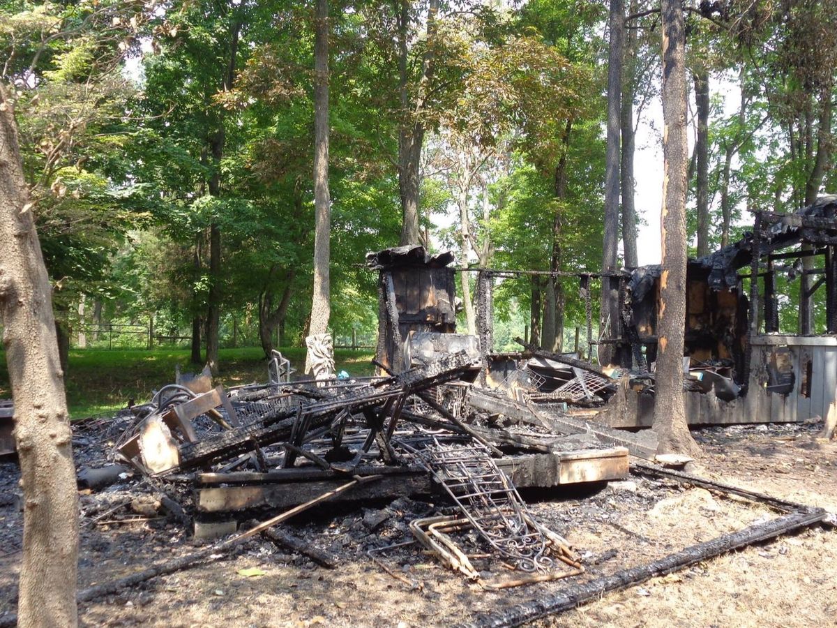 How did the fire start? Dina had a small shed attached to the back of the art studio where she kept the lawnmower. The firefighters said it is common for grass on the mower to smolder for a long time, overheat, and then spark a fire. There were two small gas cans and some mini propane heater tanks stored near the overheating mower that probably exploded, waking Dina and her husband up in the wee hours in a terrified panic.