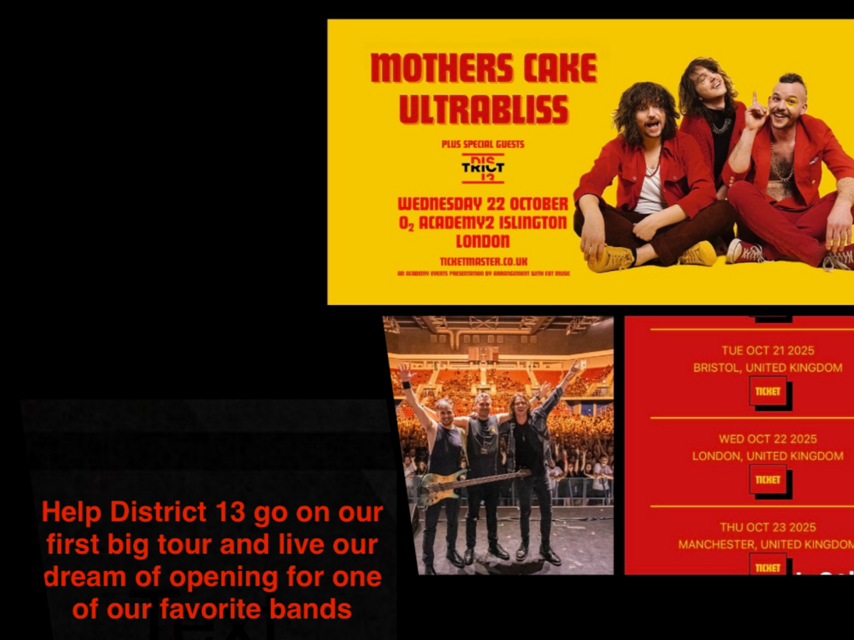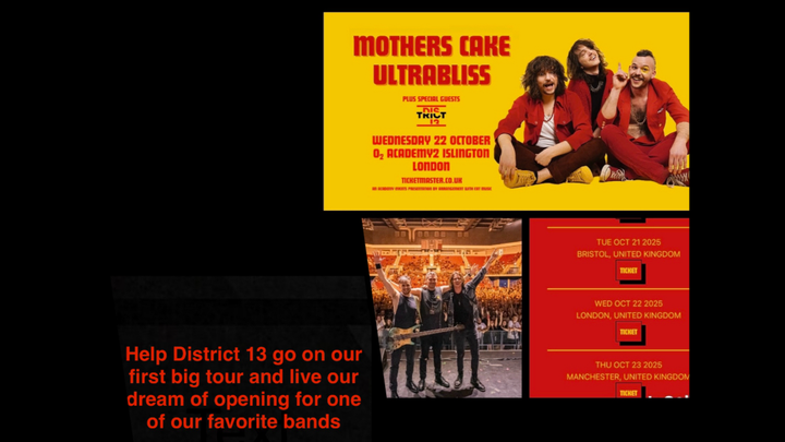 We’re District 13, and we’ve just been given an incredible opportunity: for the very first time, one of the biggest concert promoters in the UK - together with Mother’s Cake’s management - has invited us to join a tour with the amazing Austrian band Mother’s Cake.