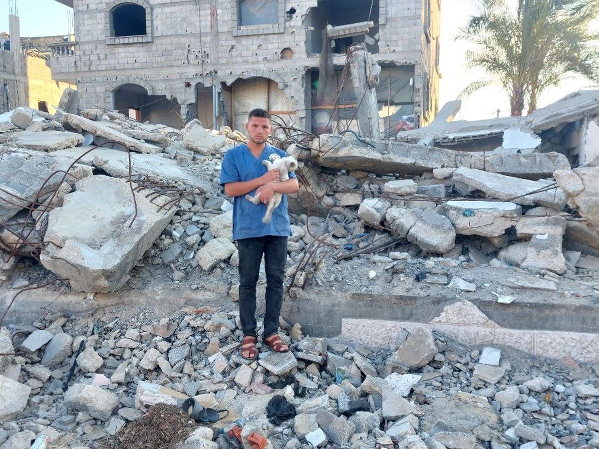 I am Muath, a veterinarian from Gaza, and I am currently working as a volunteer against animals that have been bombed in these current circumstances. I am ambitious and persistent. It consists of 8 people in Gaza: ., and I worked tirelessly. I had already established my own special air services clinic in Gaza City a year before the war. I devoted myself to my family, worked hard, and built my career. Unfortunately, my life was turned upside down on October 7th. Since that day, several innocent lives have been lost in Gaza, many innocent people have lost their jobs and only source of income, as well as their homes.
