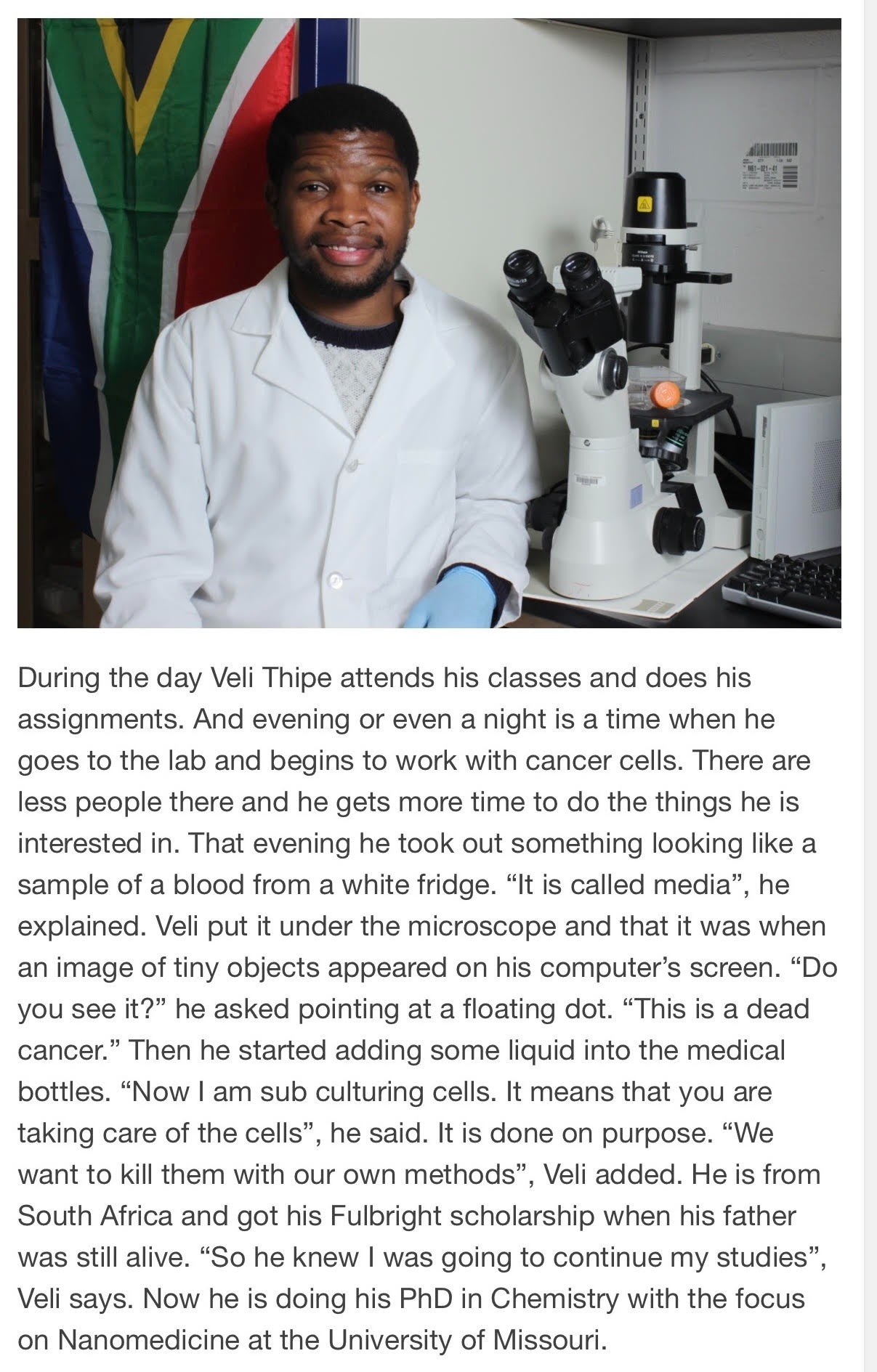 My name is Velaphi Thipe, and I am a cancer nanomedicine researcher who has dedicated my life to developing safer, more effective treatments for cancer and other life-threatening diseases. It has always been my dream to study, work, and make a meaningful contribution to society in the United States and beyond, using science to save lives and give hope to families facing devastating diagnoses.