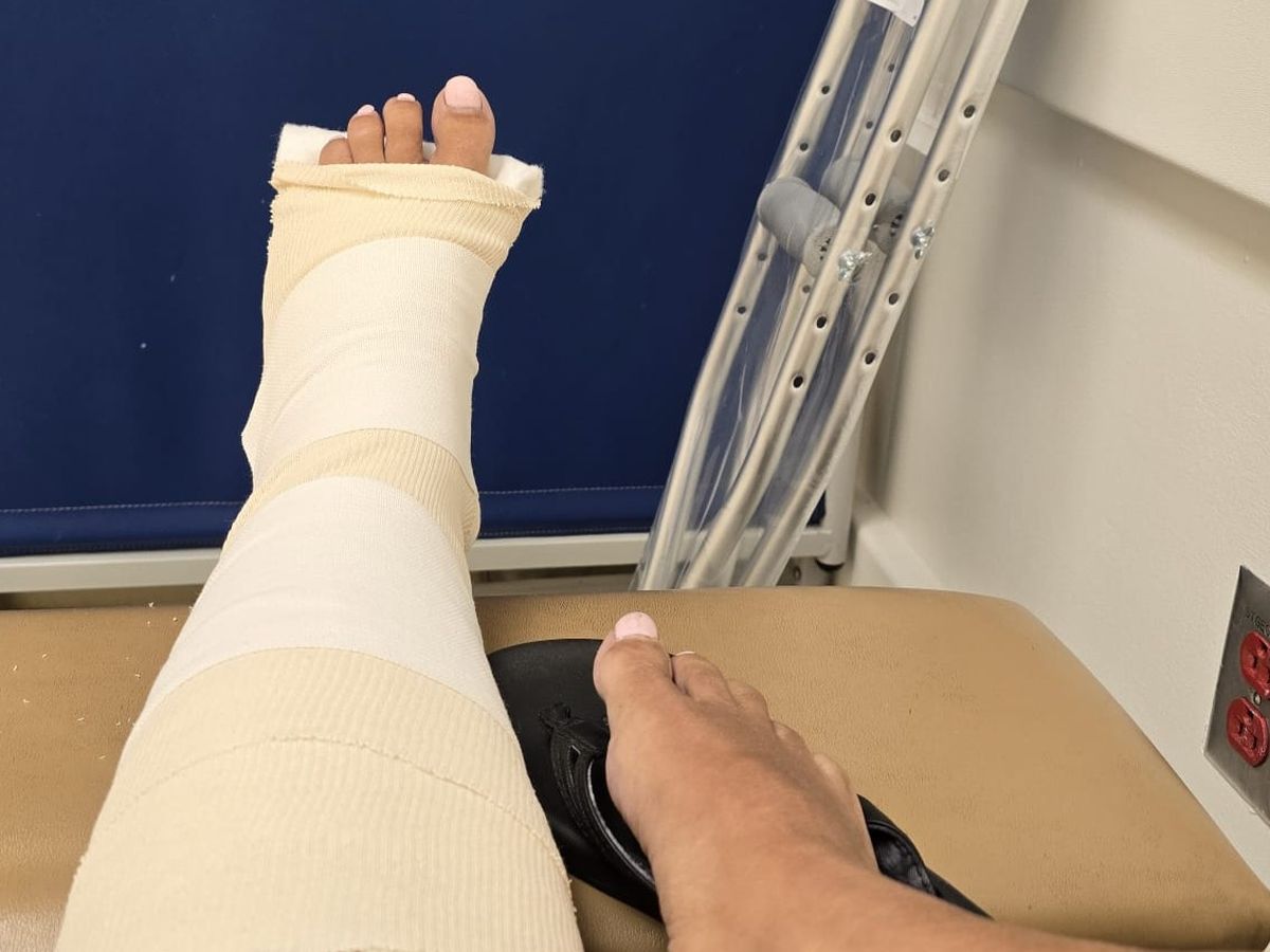 Thirty days, almost to the hour later, Dre broke her foot. It's a complicated break (a closed displaced fracture) and she might need surgery. She also has a corneal abrasion in her right eye.