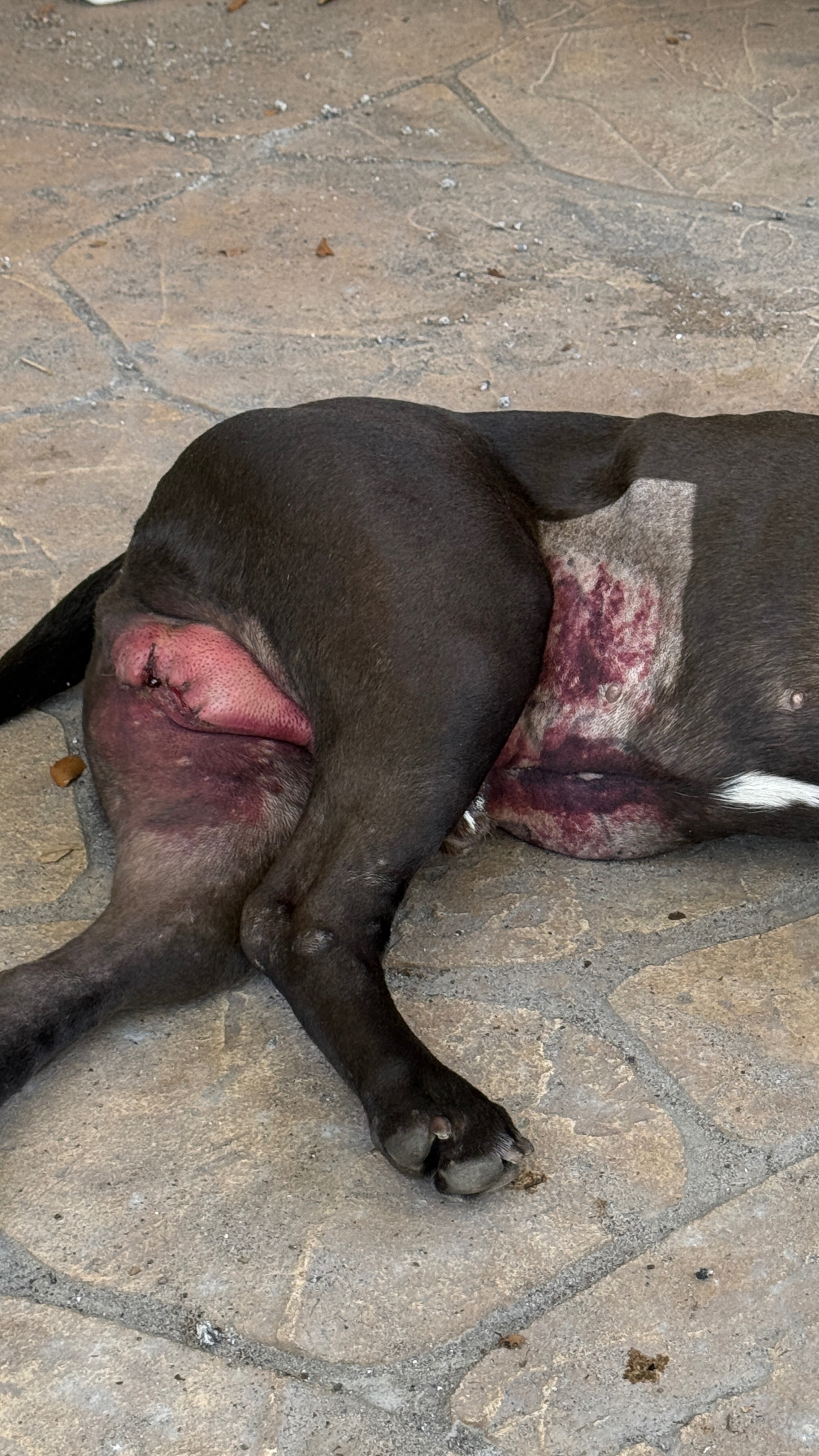 After being neutered at the shelter, his new family immediately noticed something was very wrong. His incision looked horrendous, and they didn’t hesitate; they rushed him straight to the emergency vet.