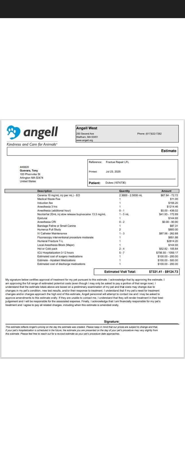 I was also given the option of amputation of his left arm or euthanization. I have immediately dismissed and ruled out those two options.