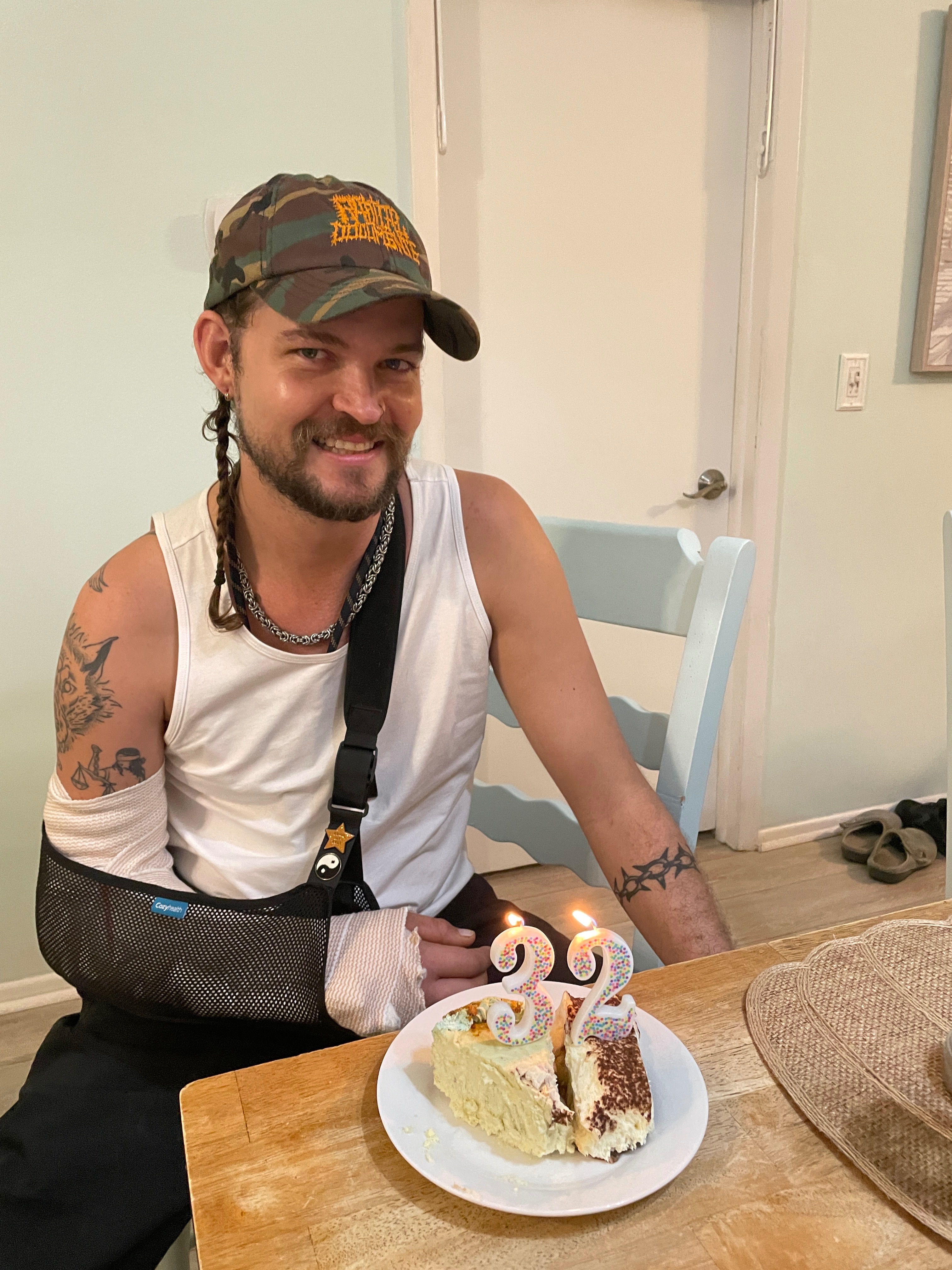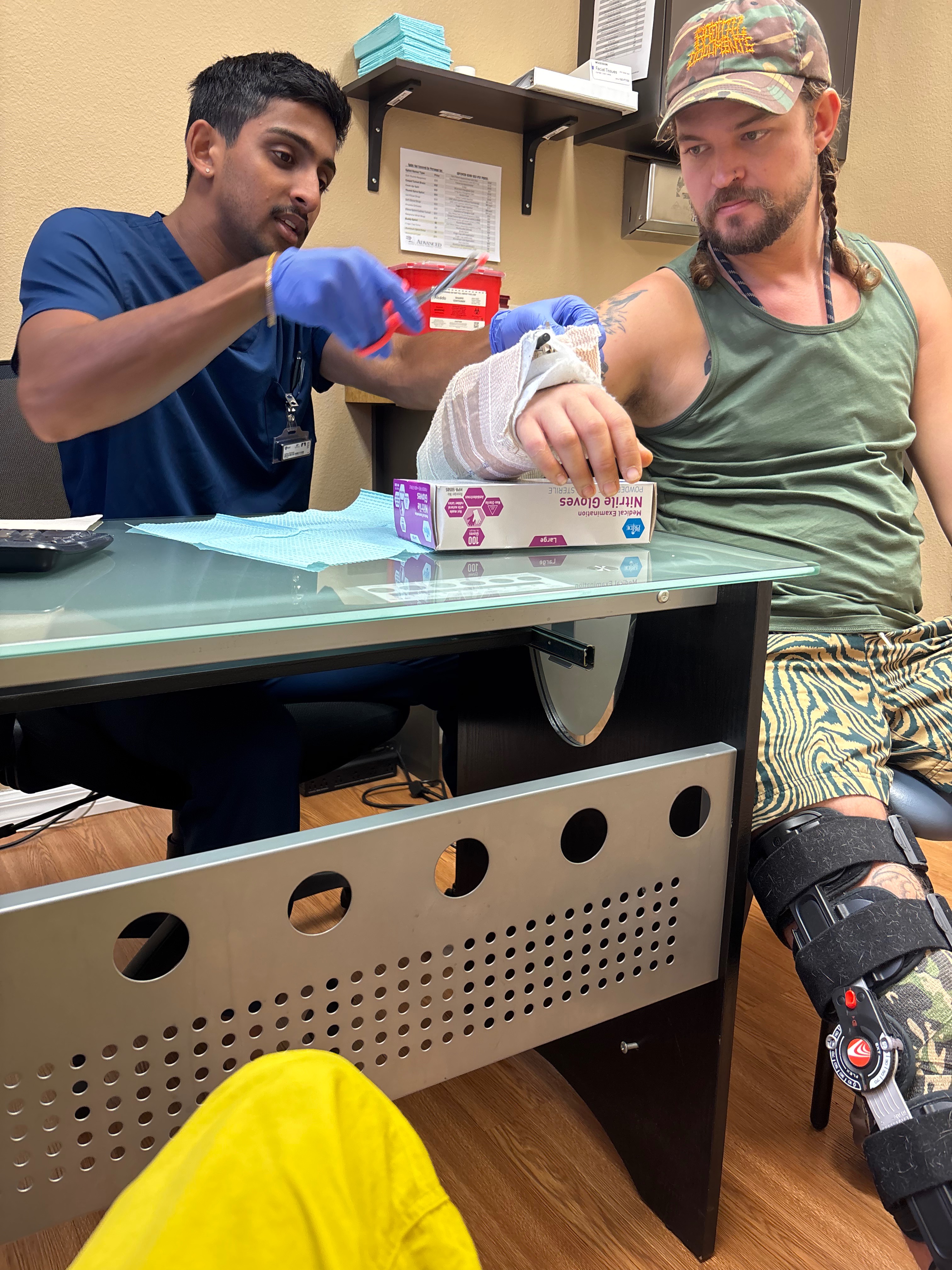 The hand and wrist injuries were extensive requiring two different complicated surgeries with internal and external hardware that stuck out of his hand for a few months.
