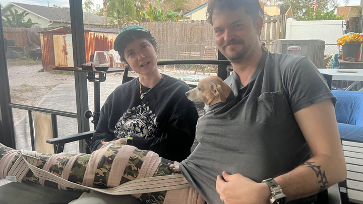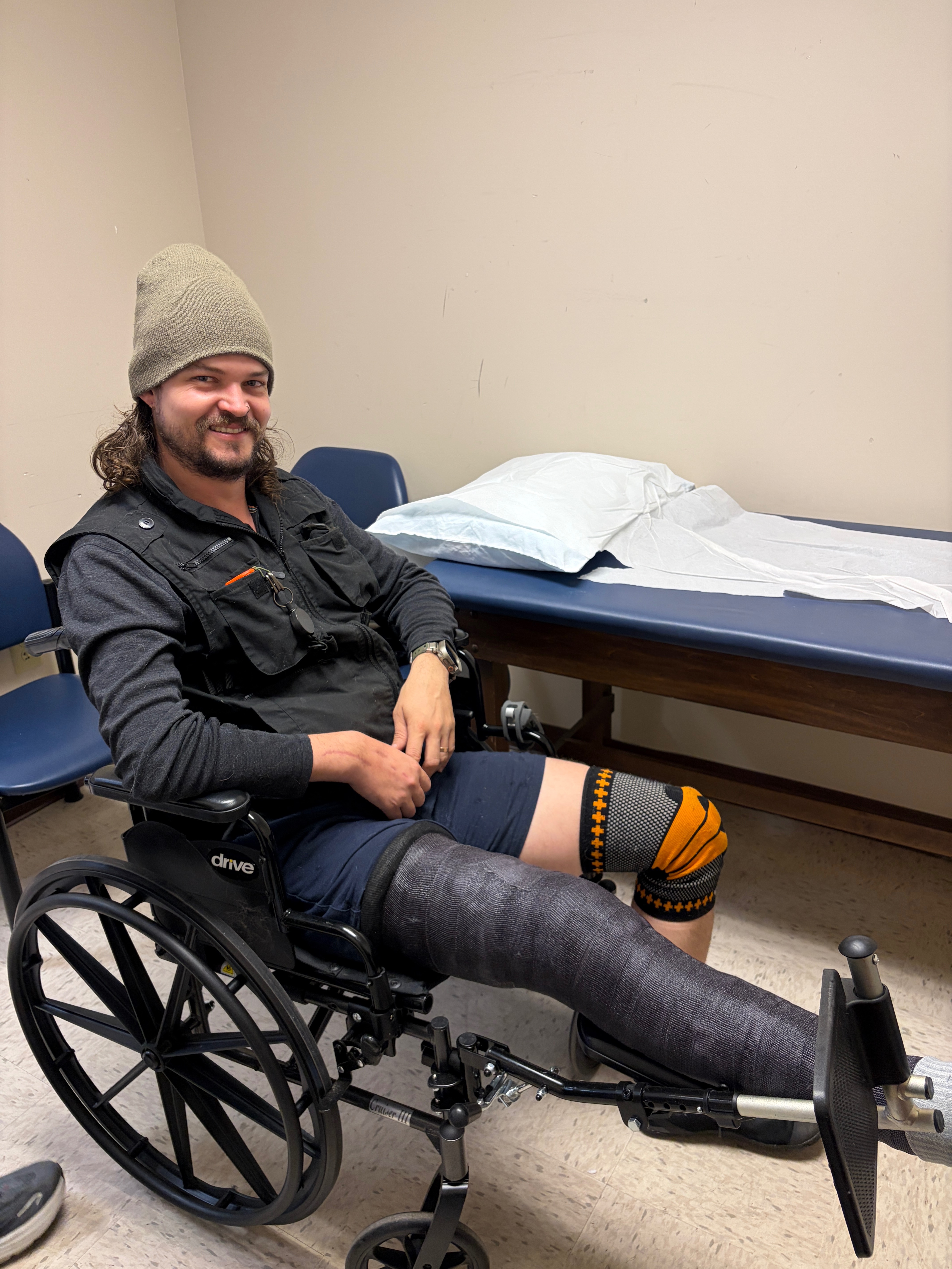 He just had his third extensive knee surgery because the first two failed. He must wear a full-leg cast for four months in addition to the time that he’s already been immobilized.