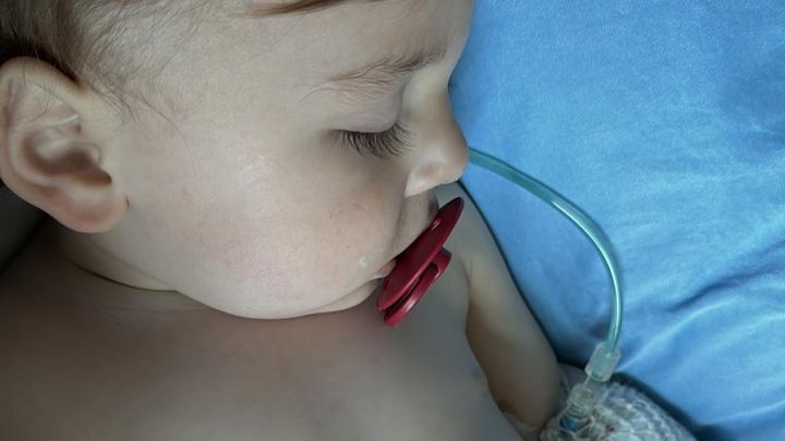 Declan, Tim and Courtenay's 16-month-old son and our youngest grandson, has been in the hospital since Saturday, April 20th and they have no idea how long he will remain there. Declan has been diagnosed with Nephrotic Syndrome, and in addition to that, Norwalk virus. He is a sick little boy.