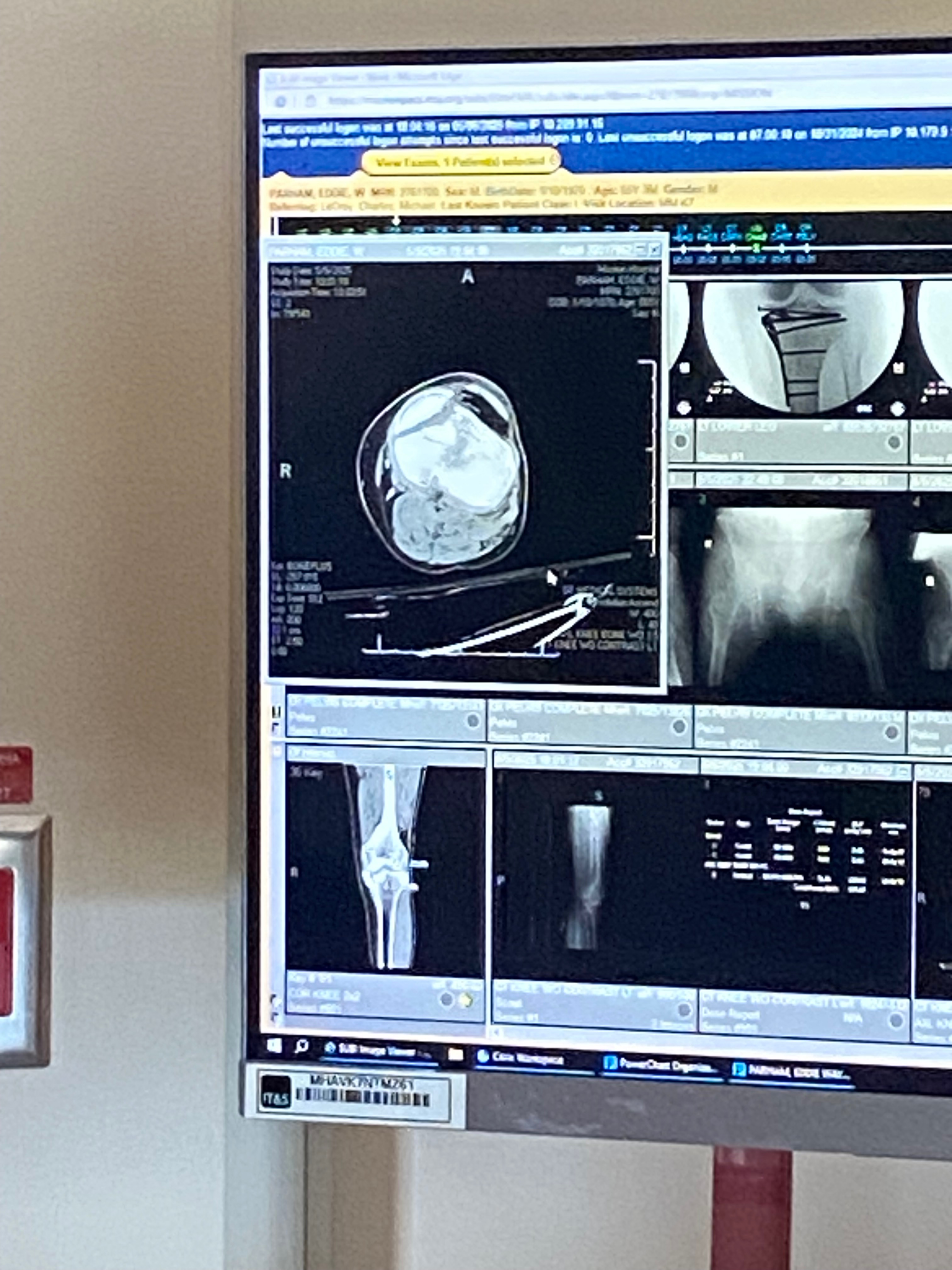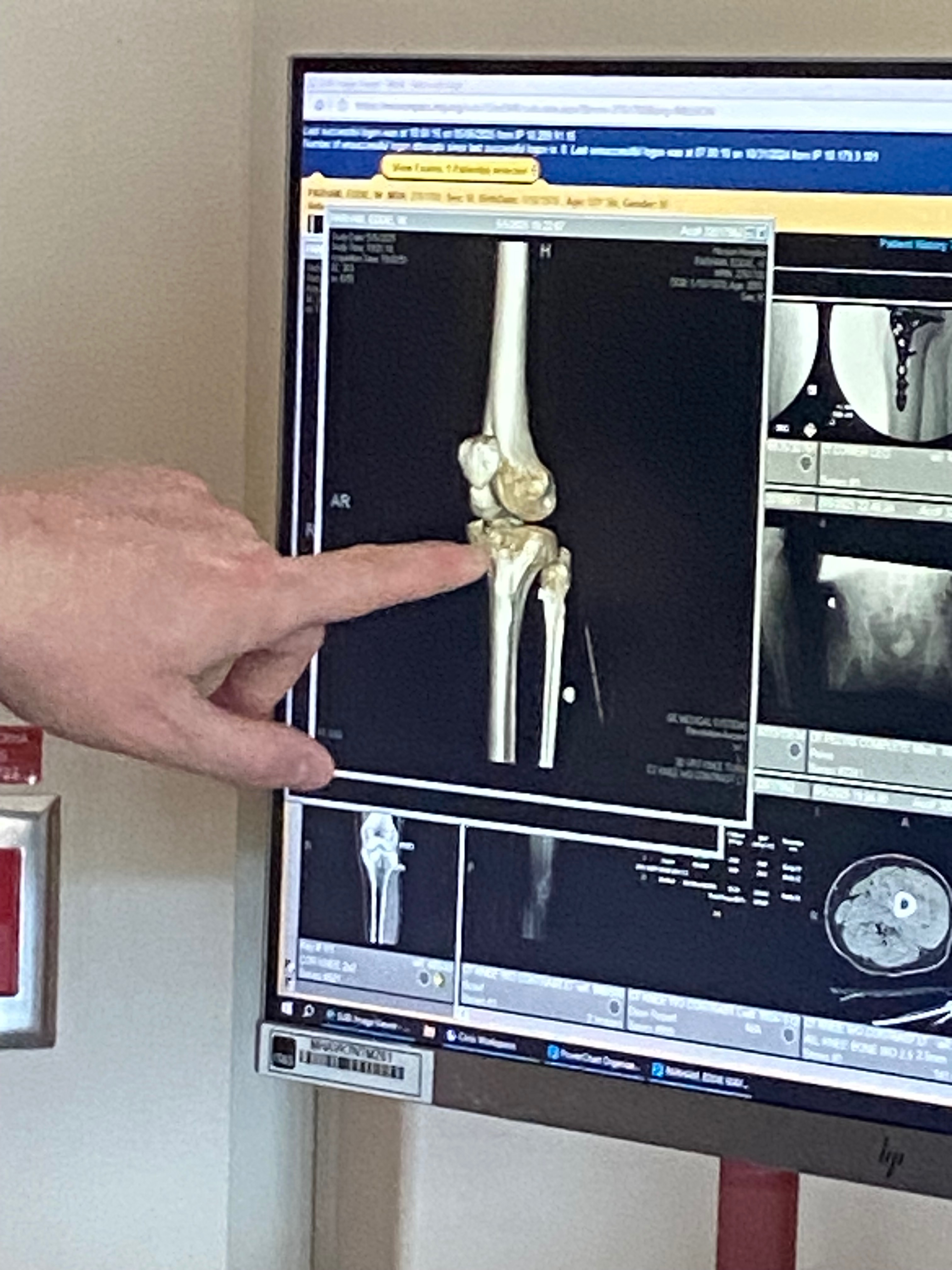 • 2 Emergency surgery corrected broken knee bones