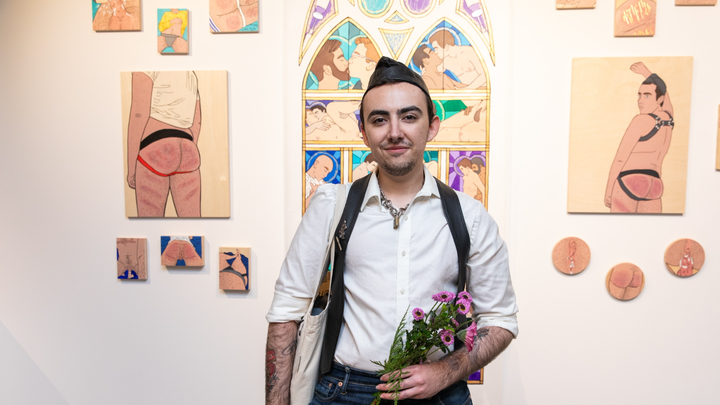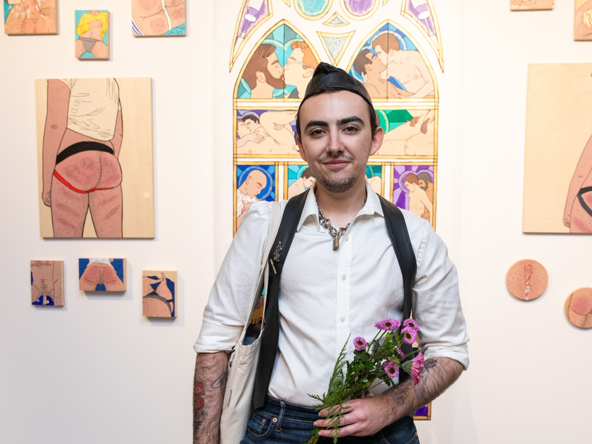 Hi there! My name’s Eli, I go by he/they pronouns, I’m 24, and I am a trans queer multi disciplinary artist living in San Francisco. My work focuses primarily upon ideas of queer sexuality and eroticism, especially as it relates to trans and gender expansive identities, and alternative forms of sexual expression. (I’m like if Tom of Finland was trans and actually represented real queer bodies) I am currently one class away from finally finishing my BFA in Painting and Drawing from California College of the Arts.