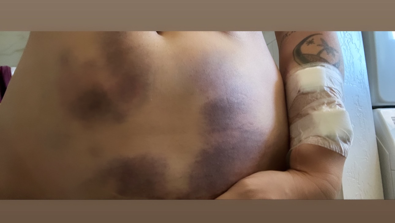 Unfortunately her health has drastically declined in the past year. Elle started experiencing debilitating nerve pain throughout her body, so painful she is unable to sleep for days. So painful she often cannot complete dialysis. She lives on her own and doesn't have family nearby to help, and is sometimes in so much pain she physically cannot make it out of bed to drive herself to dialysis. Recently Elle began noticing groups of lumps forming on her chest and arms, followed by extremely painful bruising. The growths and bruising continued to rapidly spread all over her whole body, covering her abdomen, legs, arms and chest.