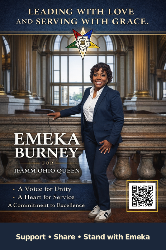 After graduation, I dedicated myself to the most important work there is: raising my family and building a career while attending Alabama State University. In Summer 2008, my family and I relocated back home to Cleveland. And in November of 2019, I found my true home within the International Free and Accepted Modern Masons, Inc. and Order of Eastern Star. I didn't just join this Order to wear a sash; I joined to serve a mission. My journey from Ms. Fidelity to a candidate for IFAMM State of Ohio Queen has been 30 years in the making. I have learned that to lead, you must first know how to follow, and to be a Queen, you must first be a servant. Throughout my days as a member of the Order of Eastern Star, I have served as Worthy Matron, District Matron and currently Vice Director for the Ohio JOINT COUNCIL.