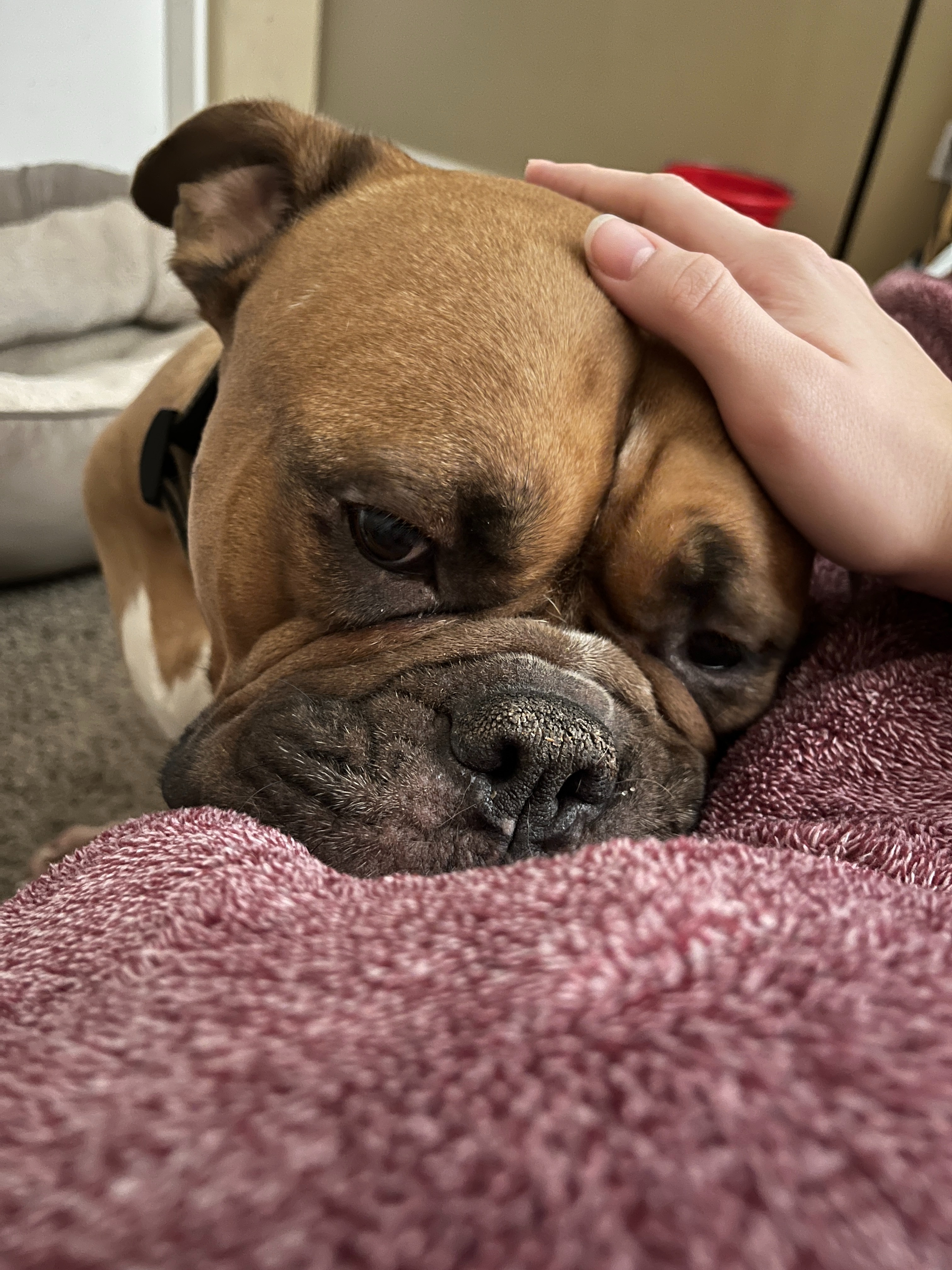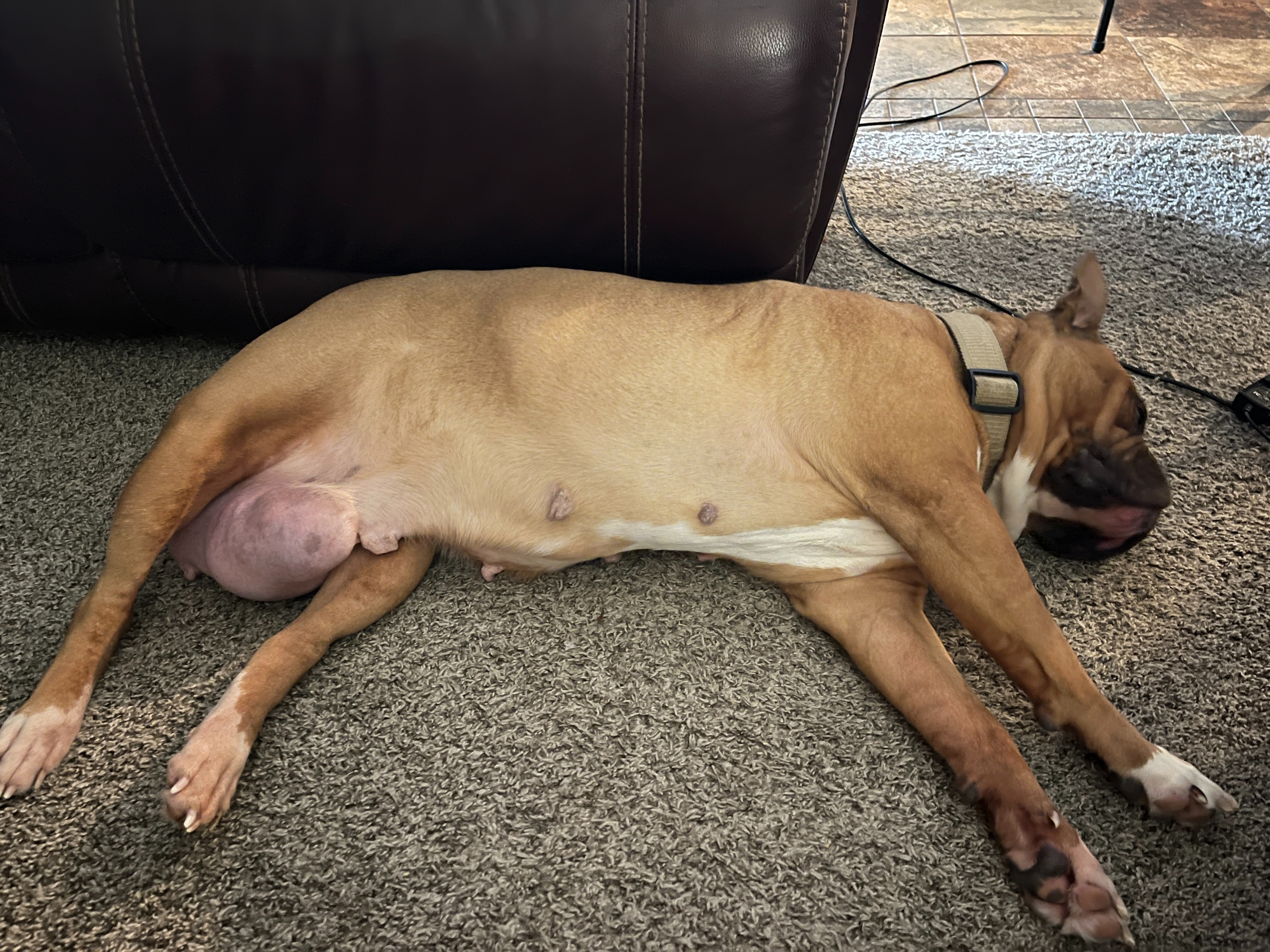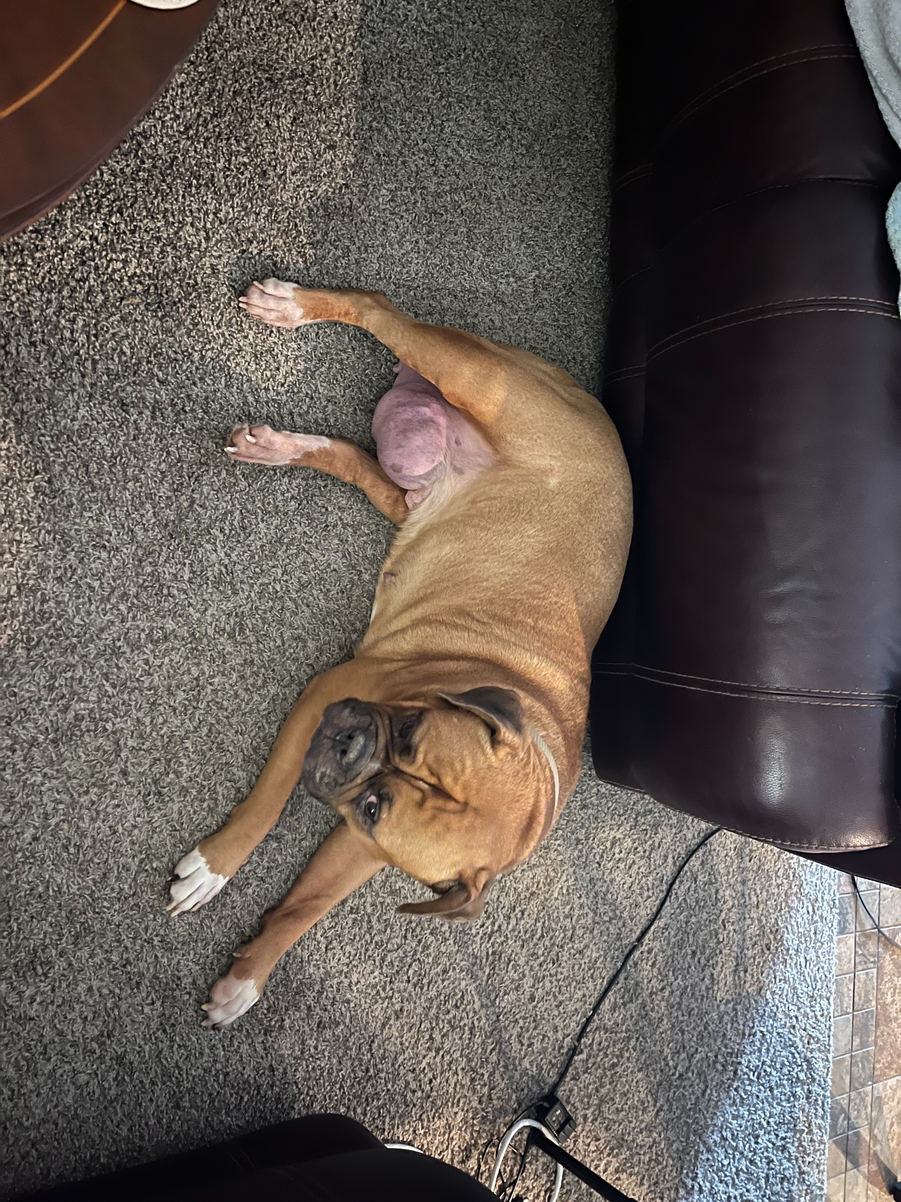 Hi! My name is Emma. I have an American Bulldog named Mazie. She's almost 7 years old, and she's my emotional support dog. I'm trying to raise money to remove a mammary mass (shown in the pictures). I can't be accepted for Care credit (I've applied twice already), so this is my last resort right now. Anything and everything helps. Even just sharing this around would be amazing, please <3.