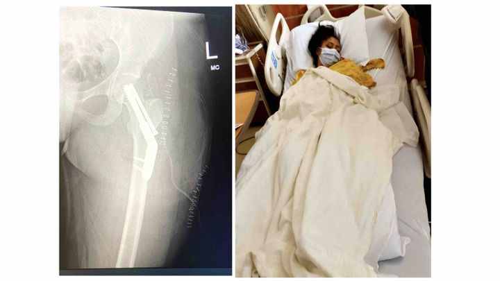 She fractured her hip & leg by landing on the left side of her body which damaged her muscles, broke her hip bone and received over 30 stitches for. She experienced immense, serious pain during her surgery in which they imperatively placed screws into her bones to avoid Avascular necrosis, which would have caused her to lose her entire leg.