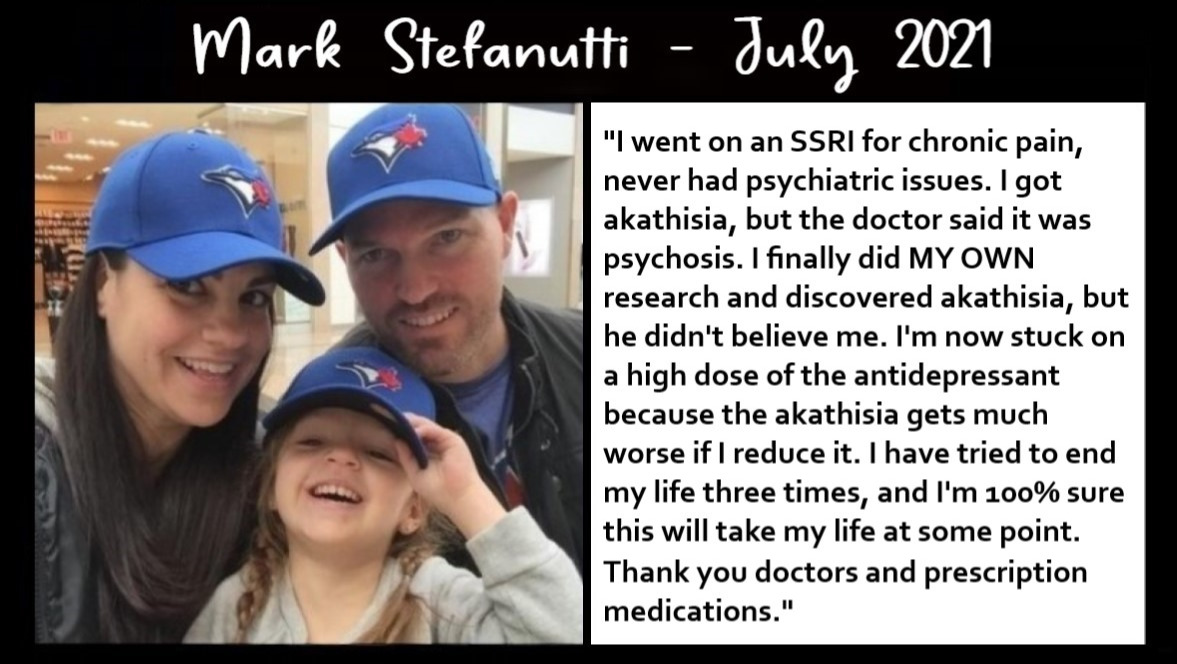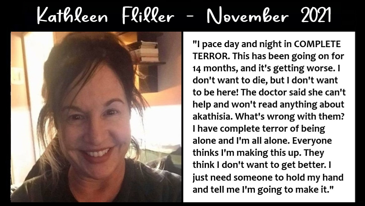 "For support with this torturous condition, we are thankful to the Akathisia Alliance for doing what doctors should have done decades ago."