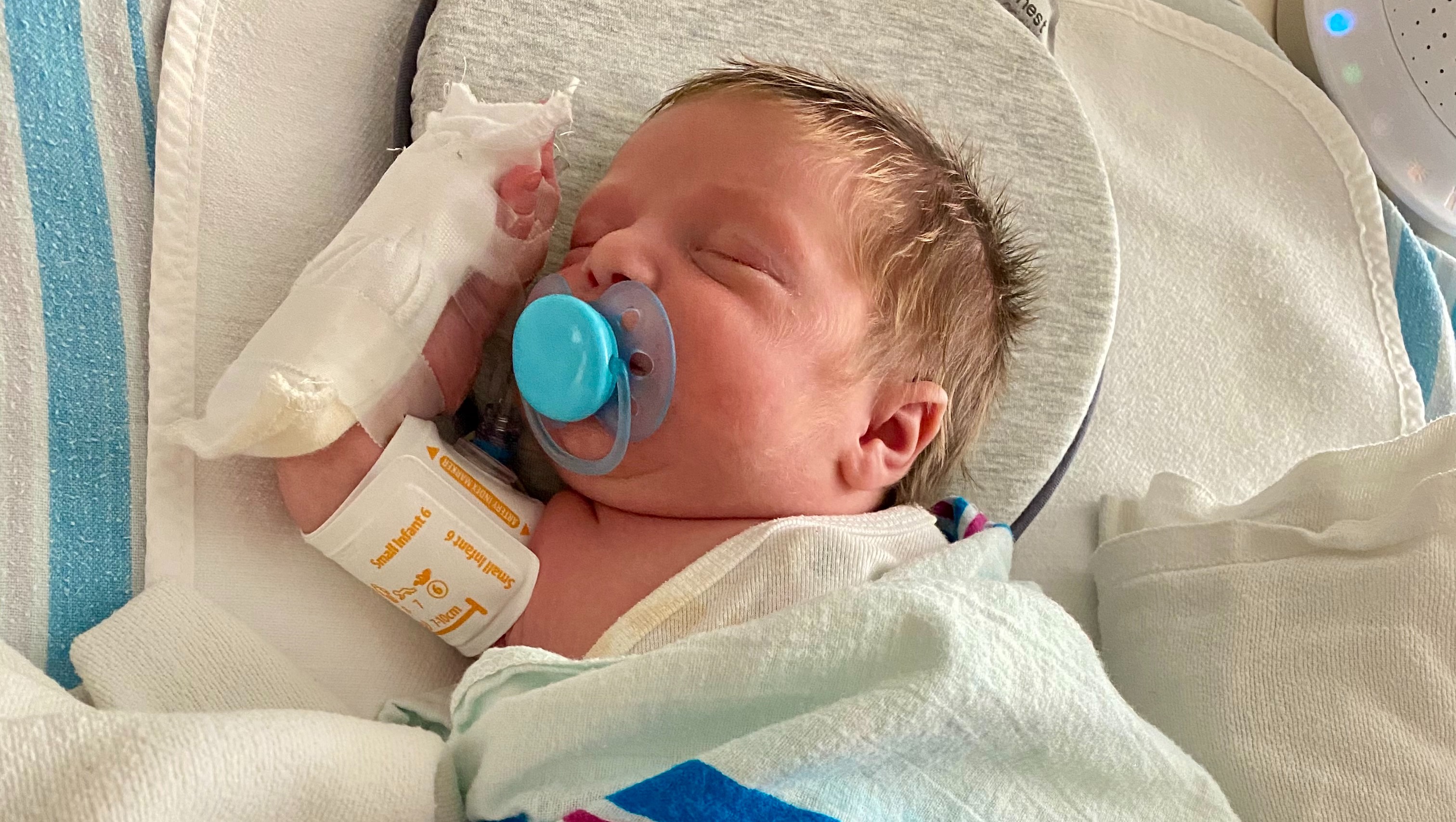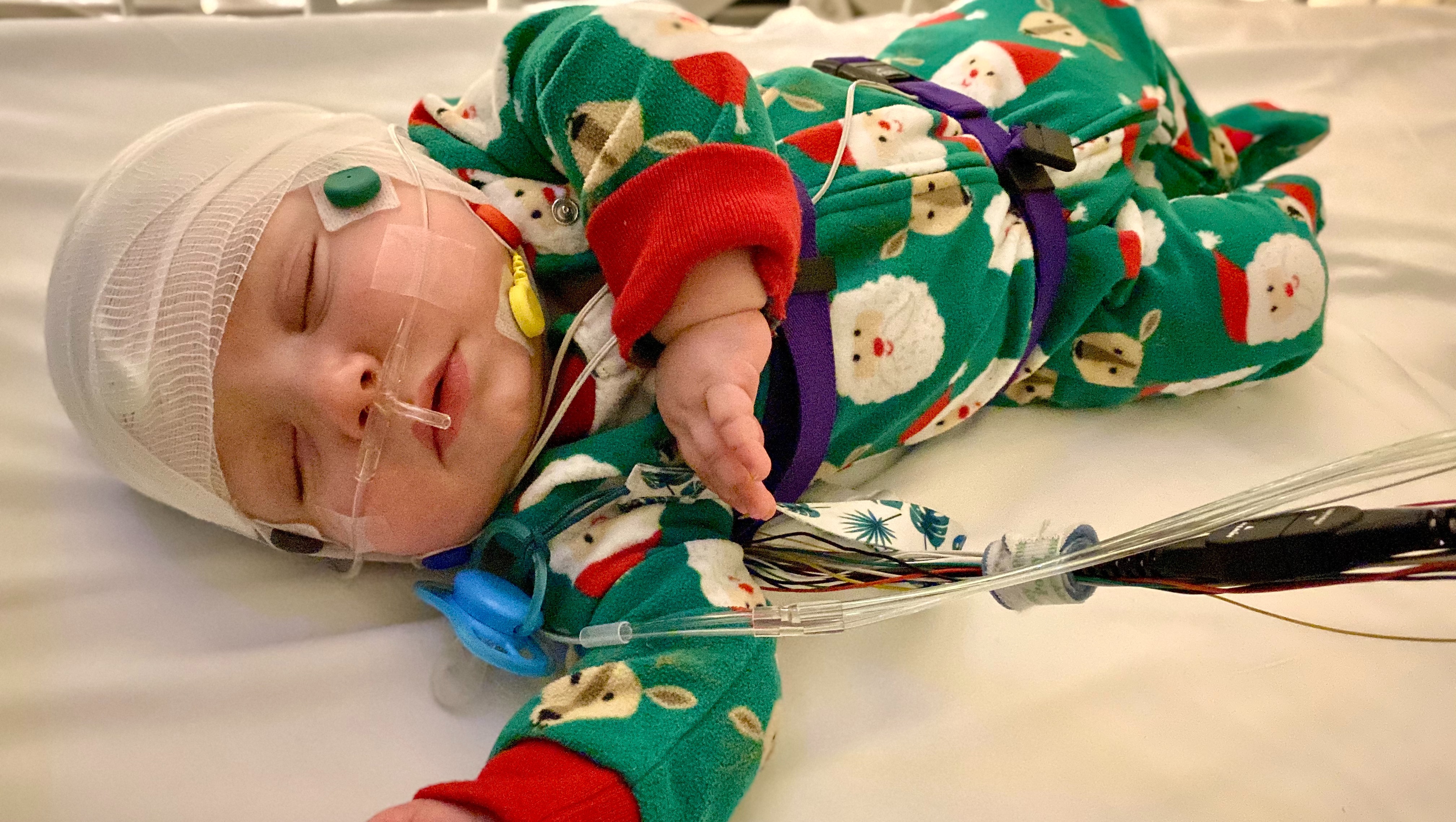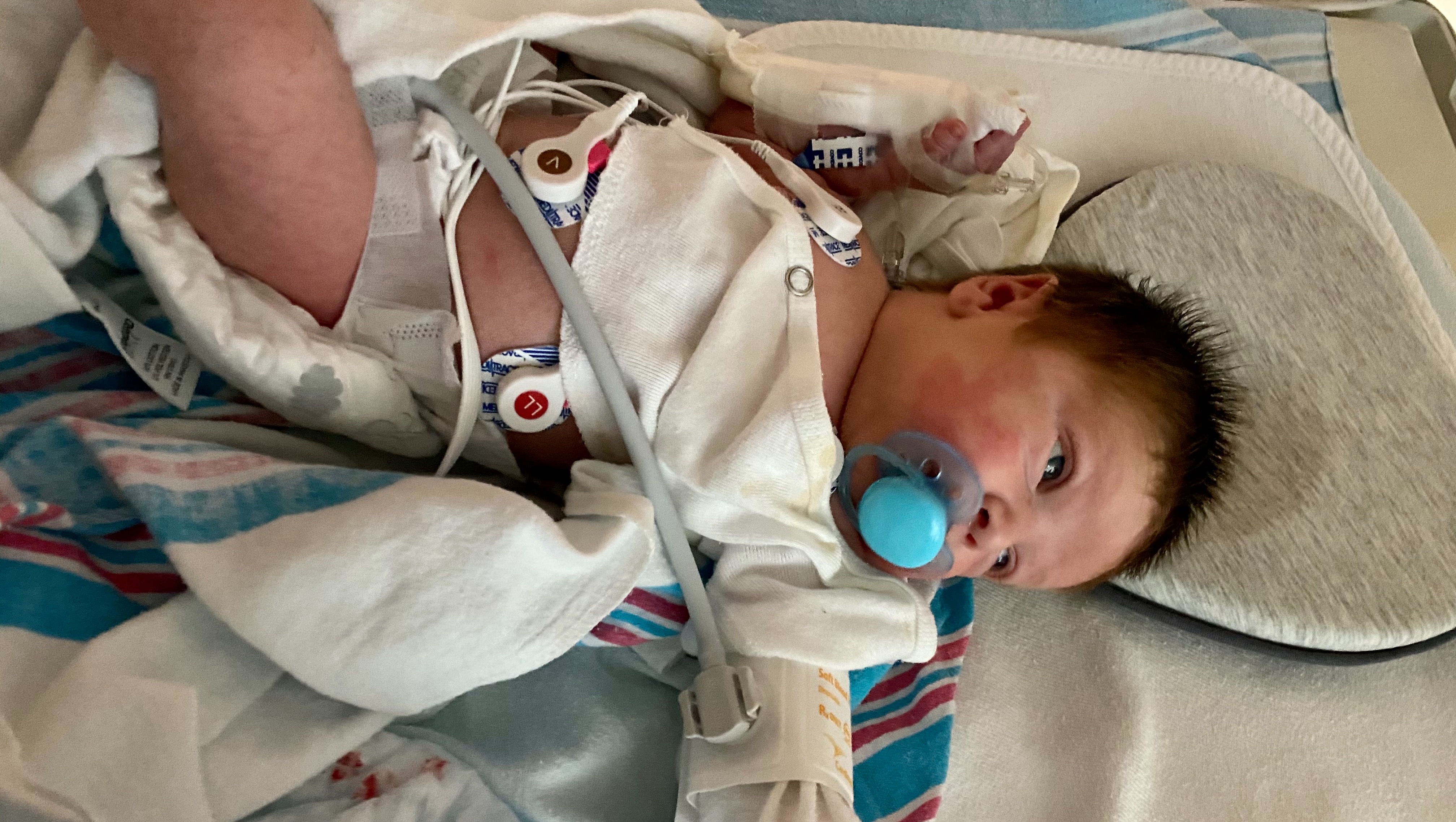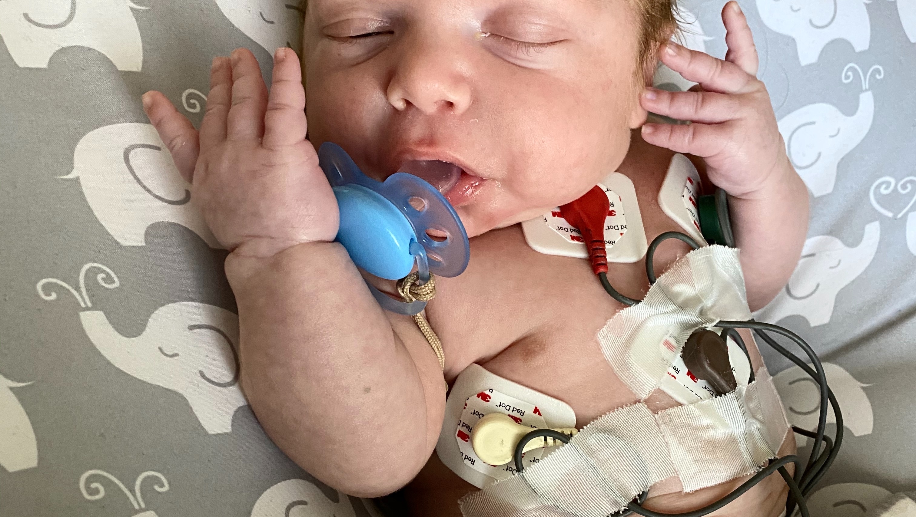 June 21st, 2020 I was woken up to my Owlet Smart Sock station alarming. The readings stated that Enzo’s heart rate was 288 bpm (normal for a newborn is 120-160 bpm) and I honestly thought it was a technological malfunction at first. My baby seemed perfectly content and happy, just sound asleep per usual. After making a few phone calls I decided to take him to the nearest pediatric urgent care to air on the side of caution. When we arrived they hooked him up to their vital sign monitor and his heart rate was in fact 288 bpm. Within seconds there was a stretcher in the hallway and my 13 day old baby was being strapped down and whisked away by ambulance. Immediately after walking into the emergency room my son was surrounded by what seemed like hundreds of people. They could not gain intravenous access at first and proceeded with two intraosseous infusion’s (IO) in his Tibia. This allows entry directly into the bone marrow, but unfortunately these were also unsuccessful attempts. Finally an IV was successfully placed in his hand and by this point his heart rate had skyrocketed above 300 bpm. At this point, he was given Adenosine two separate times to stop and reset his heart. Once his heart rate returned to normal and they had him stable, he was transferred into the Pediatric Intensive Care Unit (PICU). Before the day was over his heart had two more episodes in the PICU and had to be stopped / reset once with Adenosine, while the other he was able to come out on his own with the help of ice packs. He was diagnosed with Supraventricular Tachycardia (SVT) and placed on Beta Blockers every 8 hours after we were sent home.