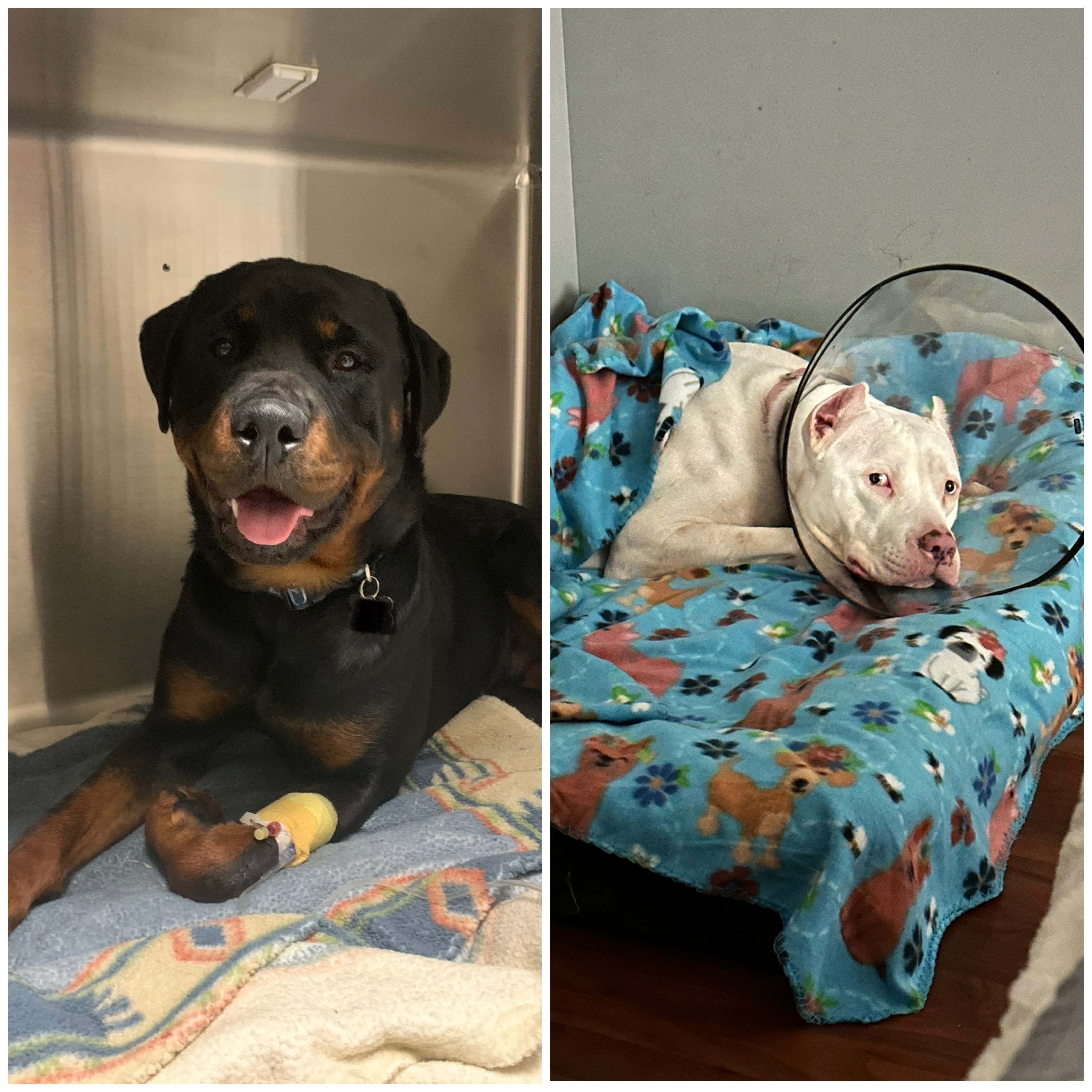 7/24 - Both dogs are alert, happy, eating… everything is going great. That evening, our new dog seems to sleep a lot and is not interested in food. We assumed the pain medication has worn off as we are nearing the time to give it again. At midnight, she begins to cough and spit up foamy white spit. I notice she is warm. I book a televet appointment online thinking this is a post-spay complication. In addition I make an appointment with our primary vet- soonest available 7/27.