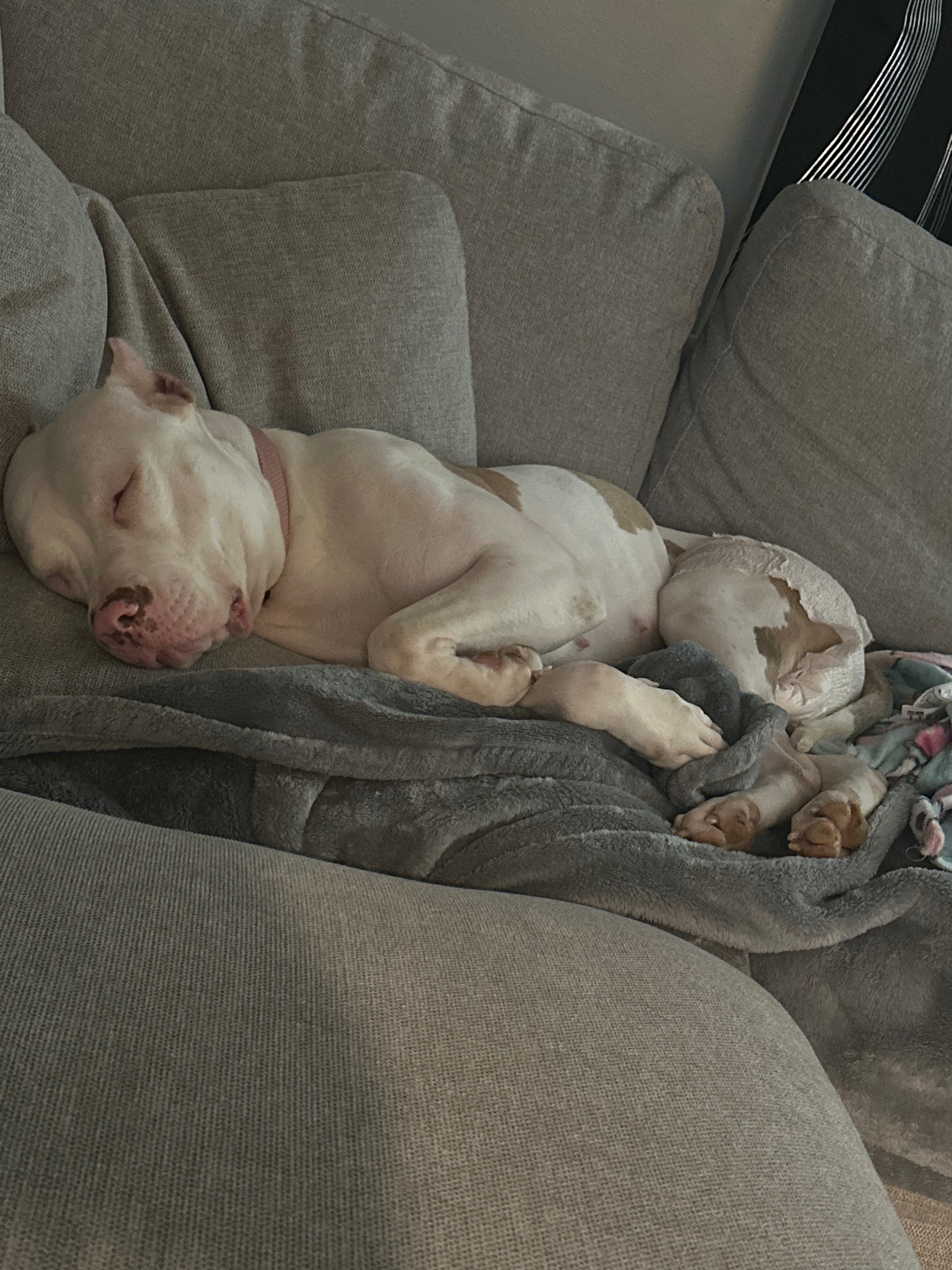 7/23 - Our new dog is spayed and ready to be picked up. She is groggy from anesthesia but otherwise happy enough. We’ve sectioned off the bottom floor of our home for her recovery.