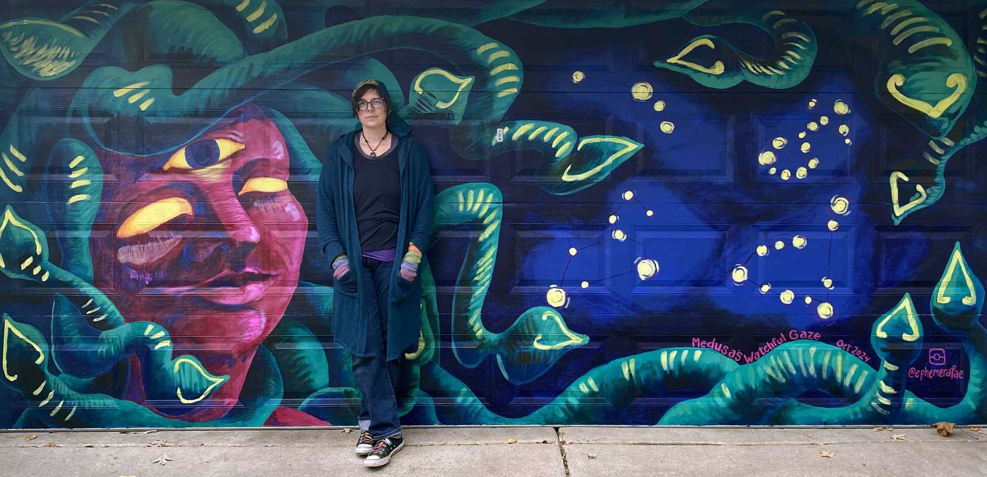 I'm an interdisciplinary social practice artist — a muralist, painter, poet, illustrator, designer, video creator, educator, tarot enthusiast, and community-builder. My life's work is about bringing people together through creativity and shared space. I believe deeply in beauty, connection, and the healing power of art.