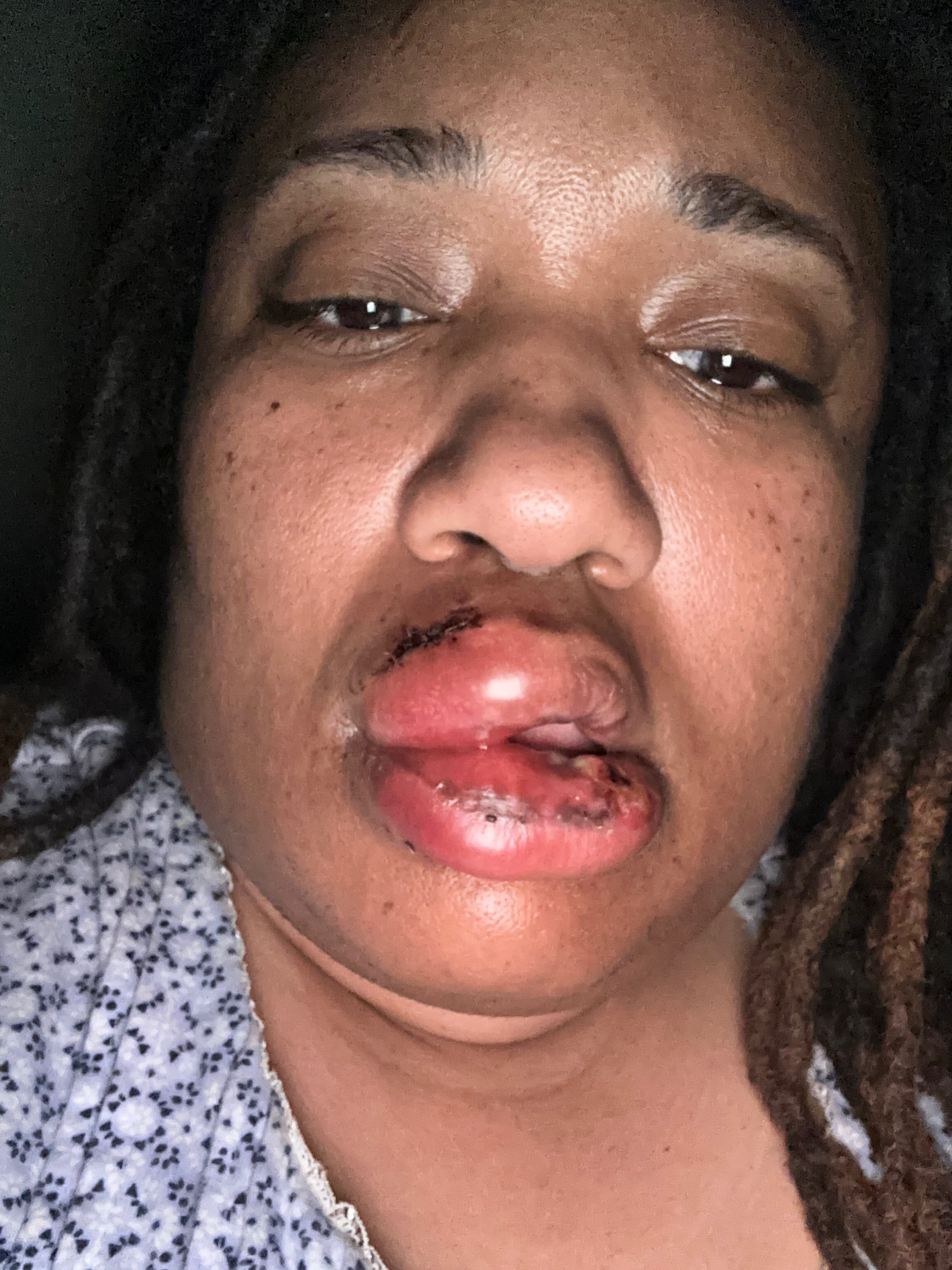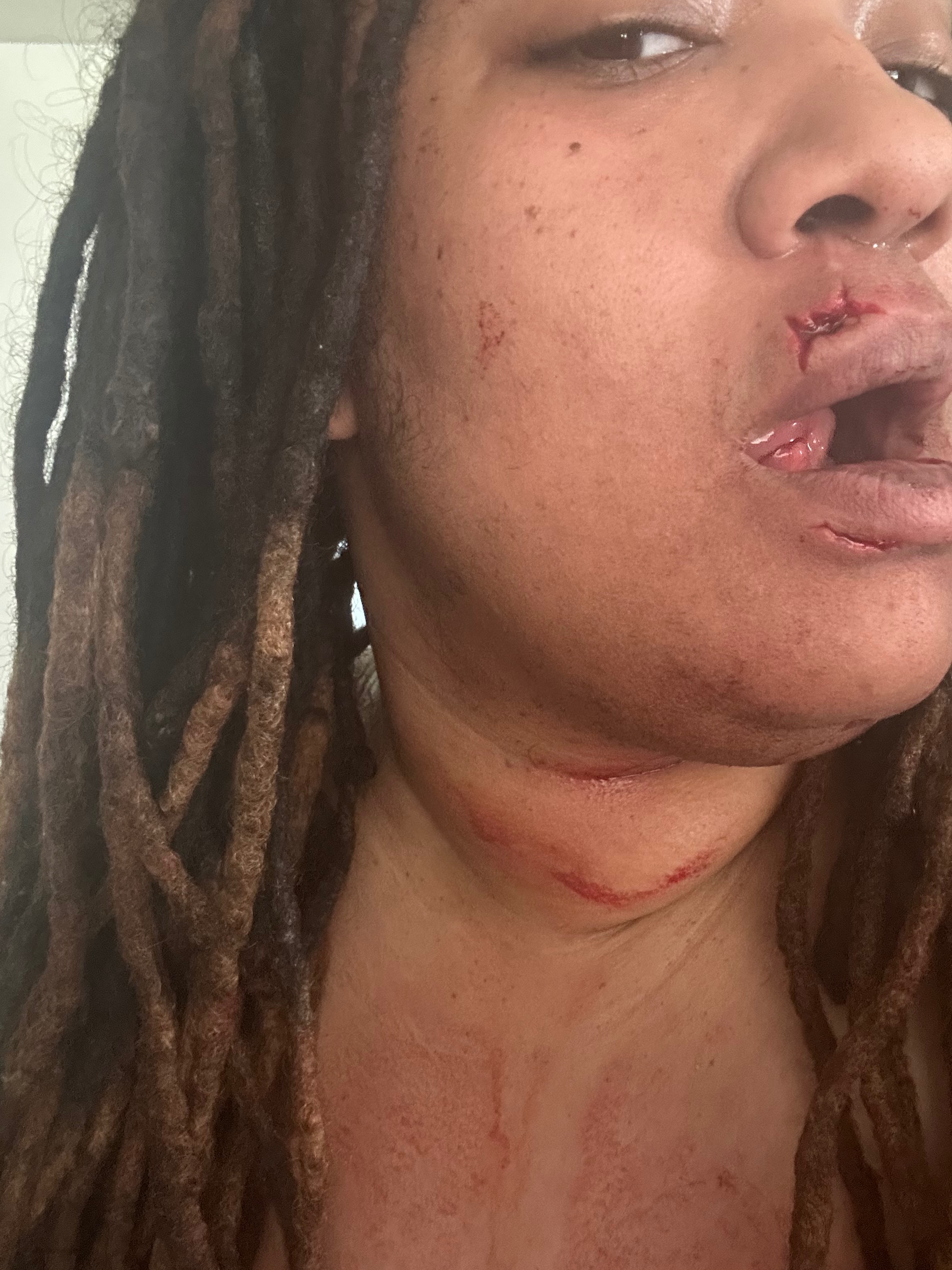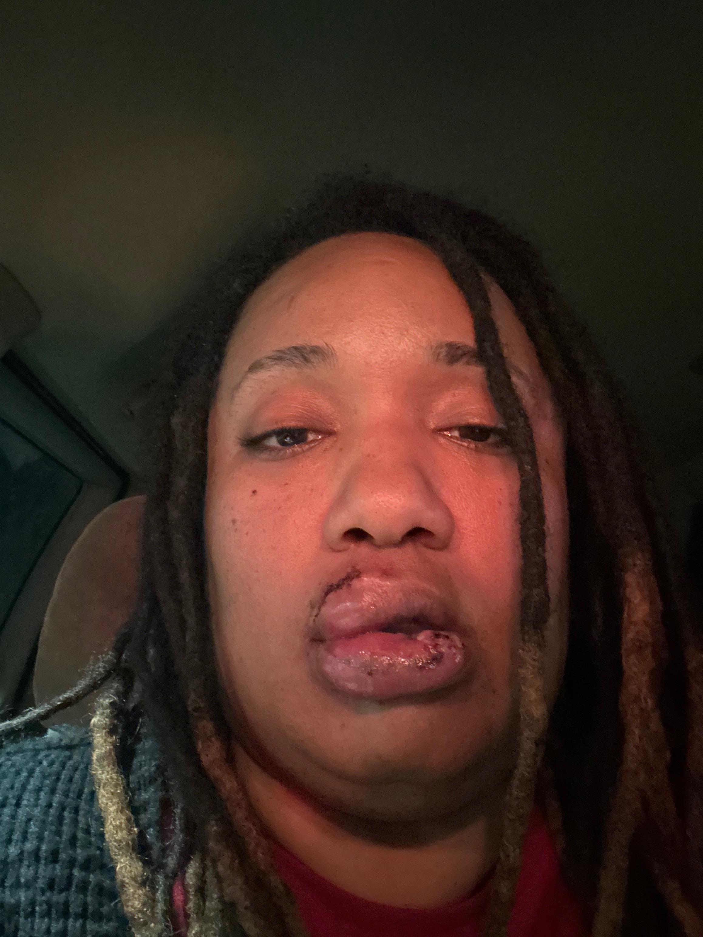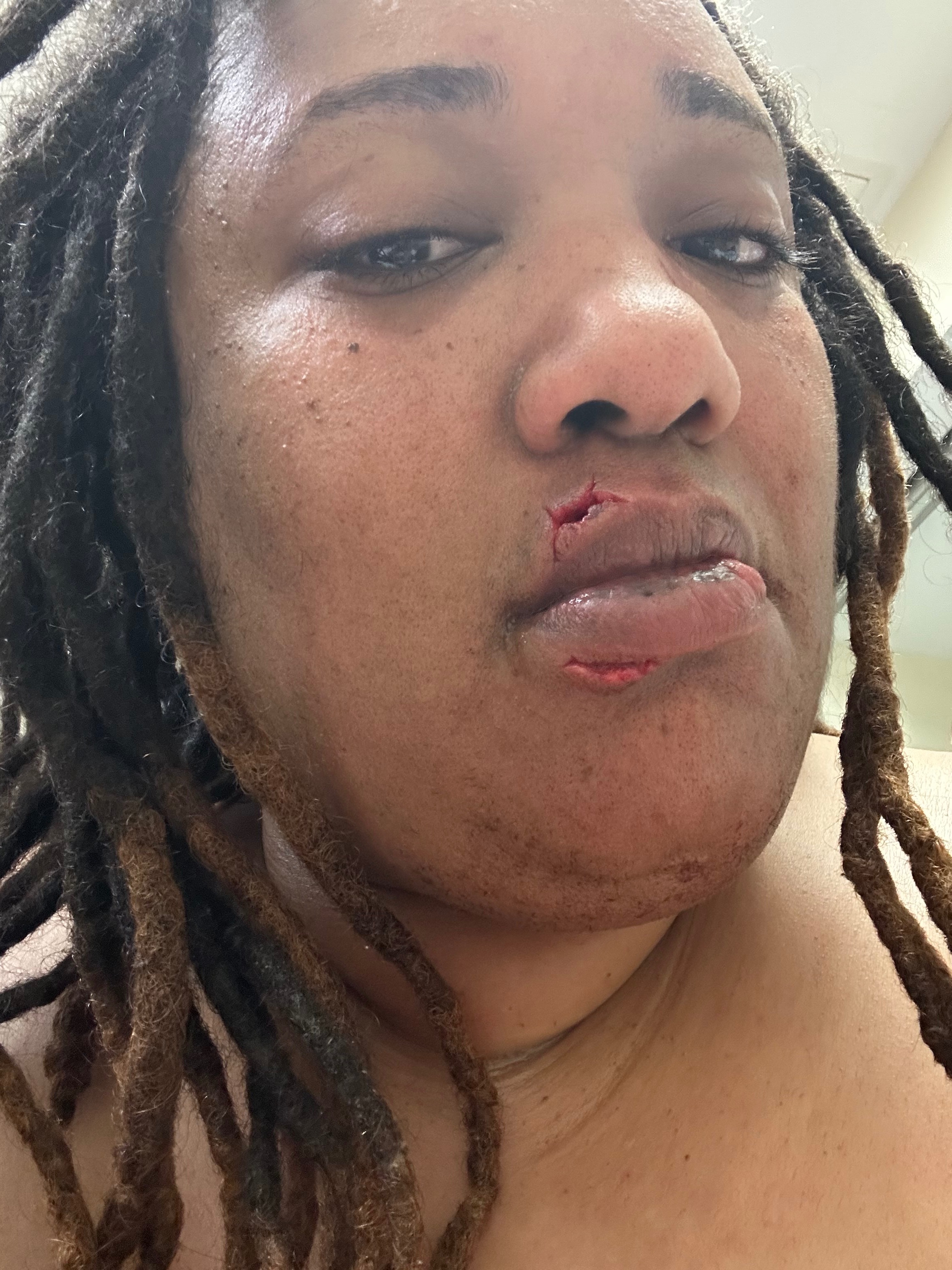 I never thought I would be a victim of violence, especially because I wasn’t the one in the relationship. I stepped in because there were children involved, and I became the one who got hurt. My sister’s child’s father attacked me, and I was taken to the ER with severe injuries. I suffered a split tongue that required stitches, stitches in my top and bottom lip, severe dental trauma, and ongoing pain, swelling, and difficulty eating and speaking. Right now, even basic things like talking, eating, and drinking are painful and difficult.