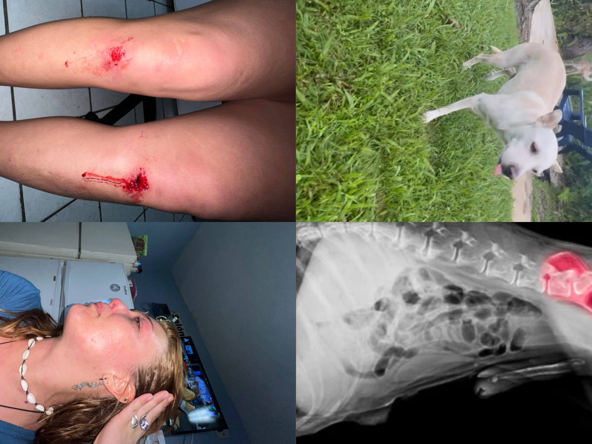 La vida en Culebra puede ser complicada y no había ningún veterinario allí, así que tuvimos que tomar un ferry de 1,5 horas hasta la isla principal de Puerto Rico para llegar a un veterinario. Una vez examinados, descubrieron que la cadera izquierda y el fémur de Perla están completamente rotos.