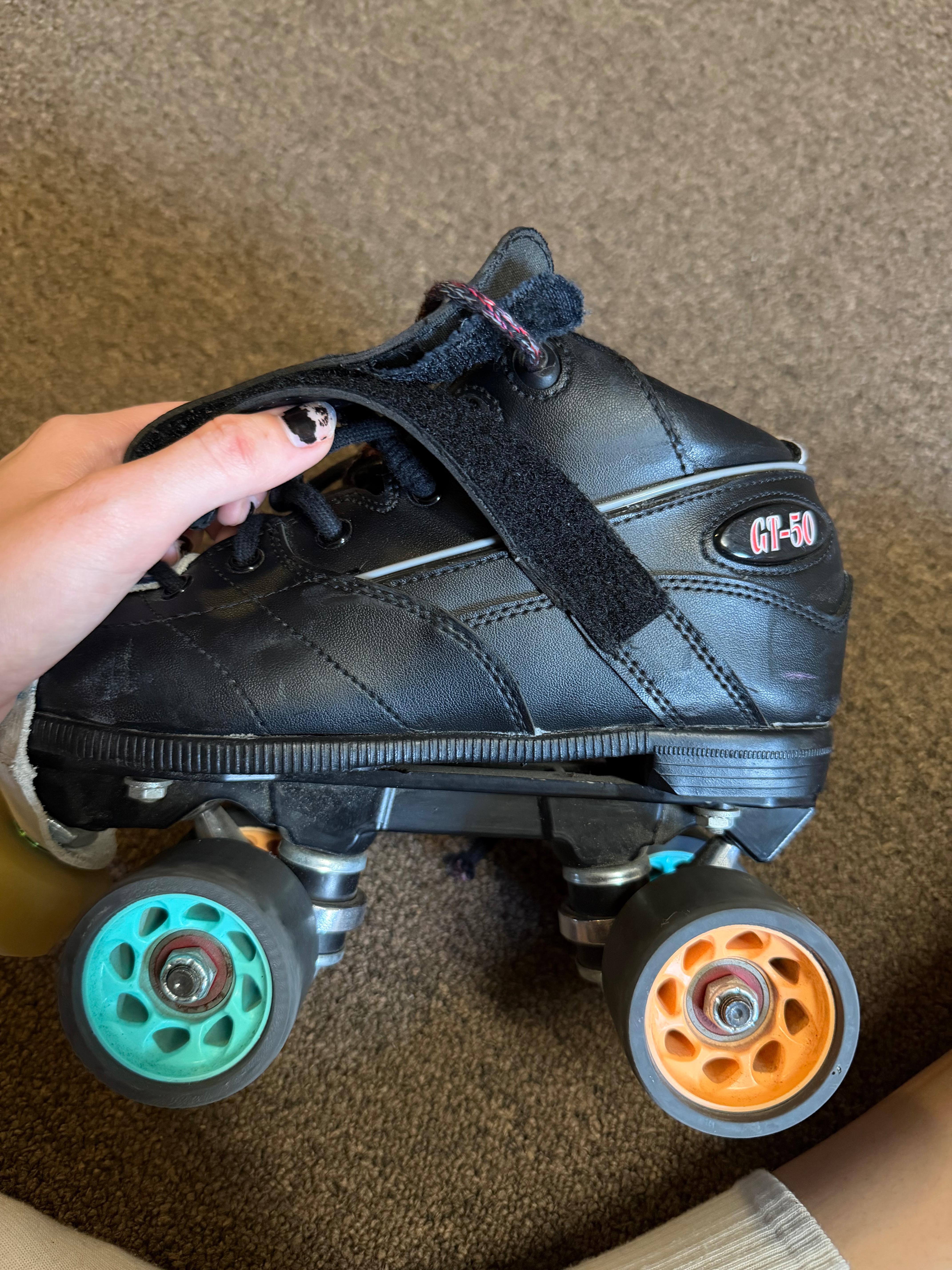 Hi! I’m Evelyn also known as Havok in roller derby, I’m currently a freshmen in college with little to no job options living off my summer paychecks while paying for my own sport fees, gas, college supplies, etc. I’m currently skating with a pair of 2 year old skates I was supposed to be using temporarily as they are “starter skates”, they are starting to give out on my and heavily affect how I play as a jammer.My current skates have busted pieces like laces, padding , and the Velcro straps, and are not generally correct skates for a jammer ; I currently have plates that are meant to carry someone who is of way more weight than I am, not fit my feet to standards, and are just generally effecting how I jam, I got the wheels often recommended for my Jamming style and once I had those I immediately improved so which the proper skates in all I could improve and attack the career is hoping for with derby. Anything helps my toward my goal thank you!
