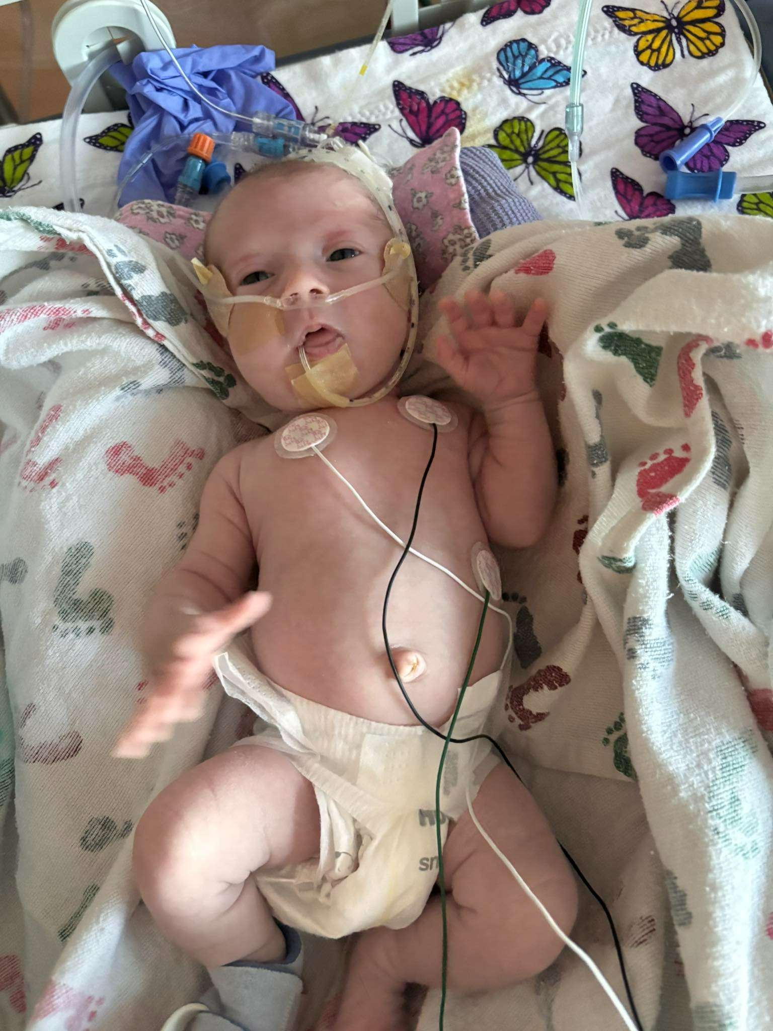 The past week she has been pretty miserable and difficult to keep calm, so sleep has been very minimal. By the time we finish the tube feeding process (which can take up to an hour) and get her calm, it’s time to start another feeding. We will most likely be in the hospital still during Christmas and are trying to take everything one day at a time, even when it feels impossibly heavy. We’re exhausted, overwhelmed, and terrified… but we’re also so proud of our little resilient fighter.
