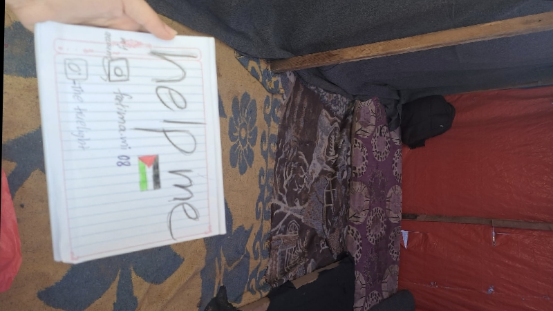 "I am Fatima. I am from Gaza and I need your help to protect my live from death. Every second I spend here increases the possibility of not surviving."