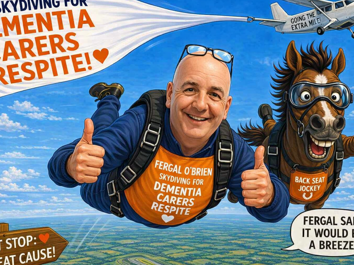 Now, Fergal O’Brien, a top racehorse trainer from Cheltenham is turning those words into action by taking on a skydive to raise £5,000 for Dementia Carers Respite.