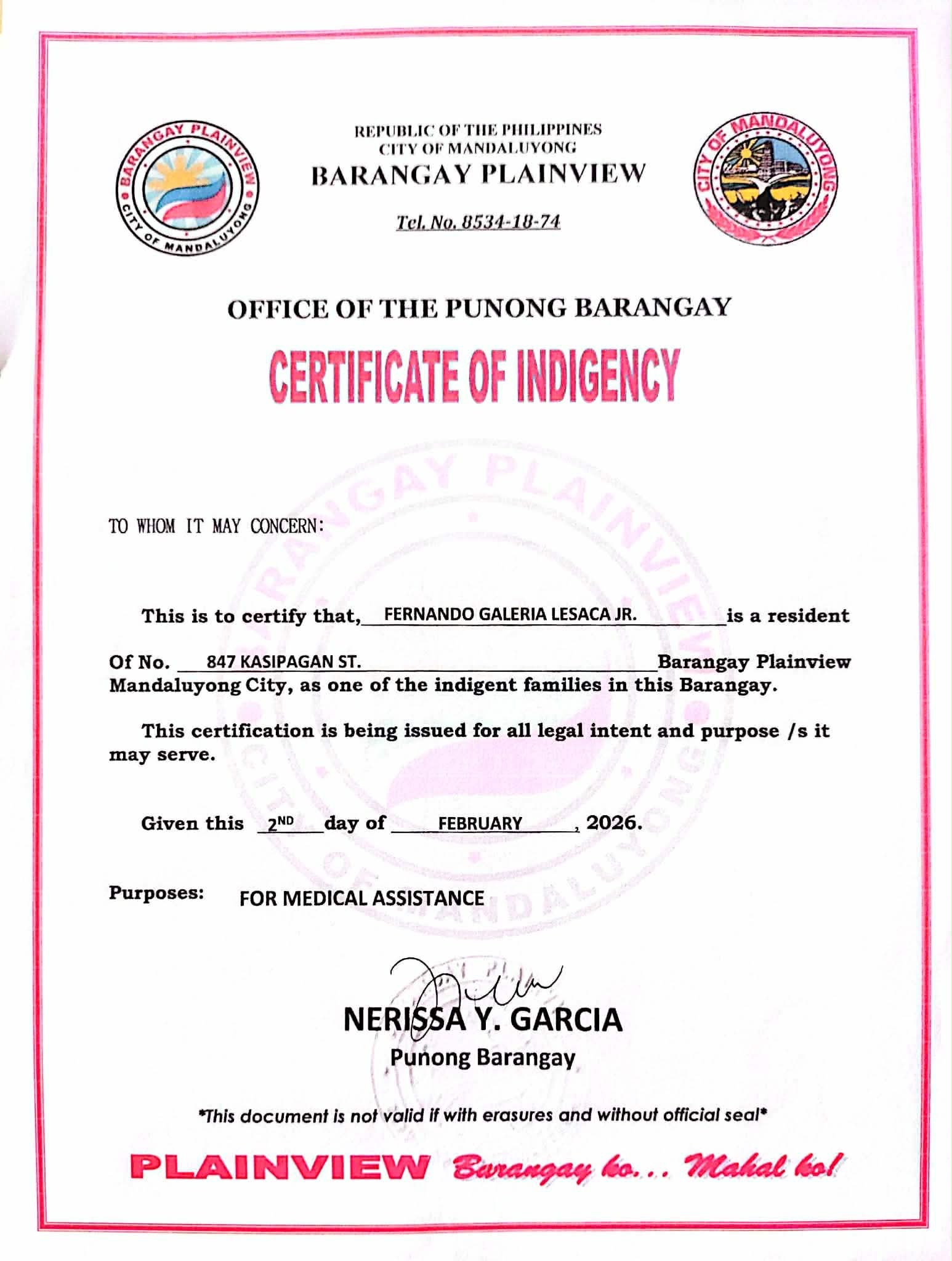 My name is Monica Lesaca, and I am asking for help for my father, Fernando G. Lesaca Jr., 63 years old, from the Philippines.