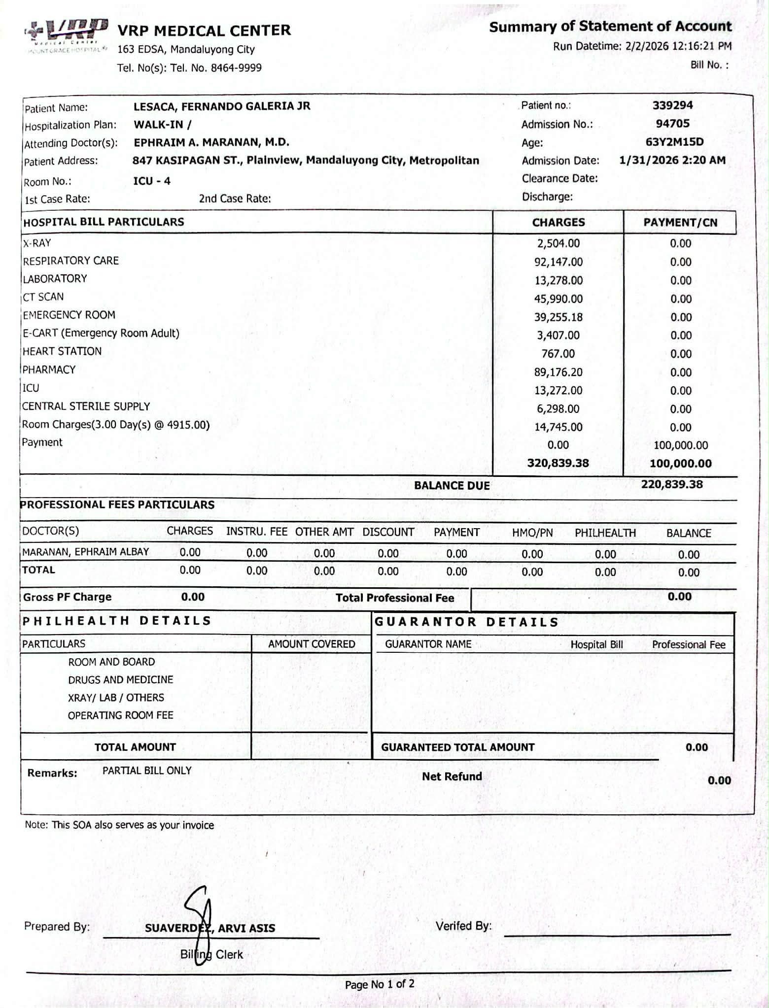 Fernando Lesaca Jr., unconscious in ICU after brain bleed; funds pay for ICU care