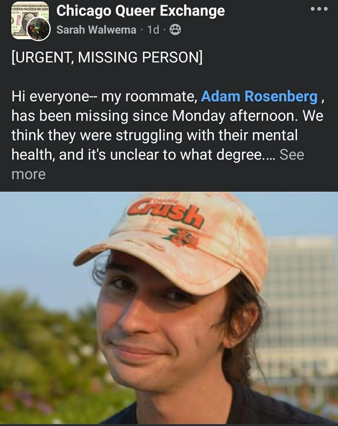 My very dear friend Adam Rosenberg has been missing in Chicago, IL since Tuesday, July 29.