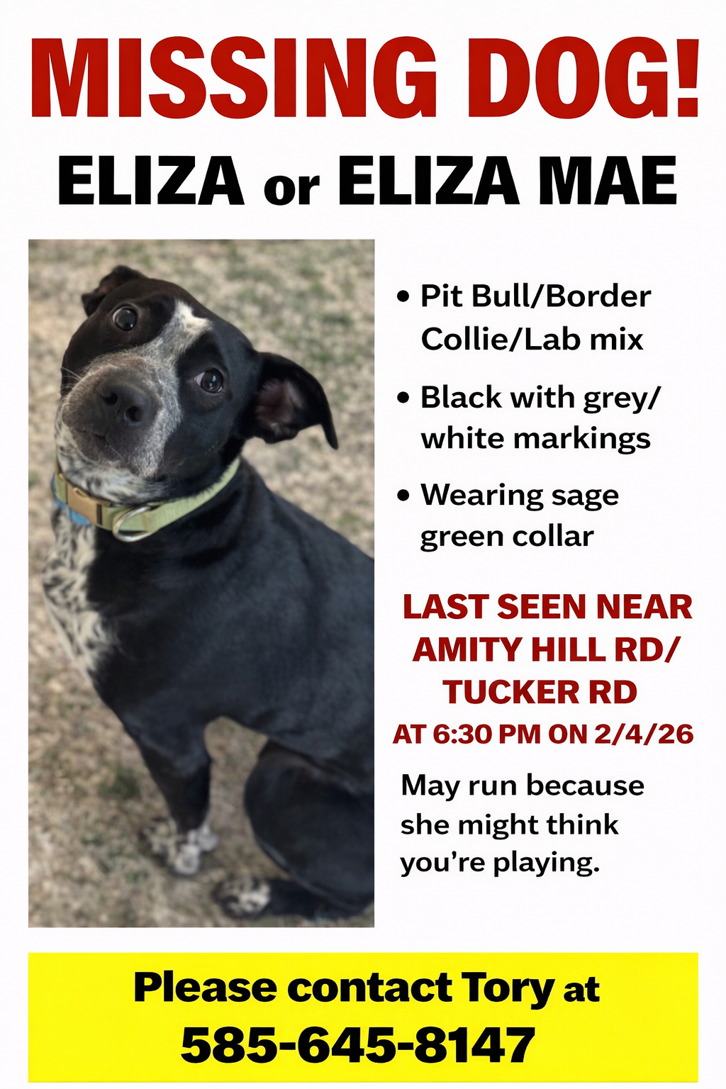 We would like to start recovery services sooner rather than later to find Eliza. Due to the widespread area(s) she could be, it’s going to be difficult, but I have faith that we can get it done with the help of friends, family, and tracking services. We want to know if Eliza is okay and our toddler is missing her dearly!