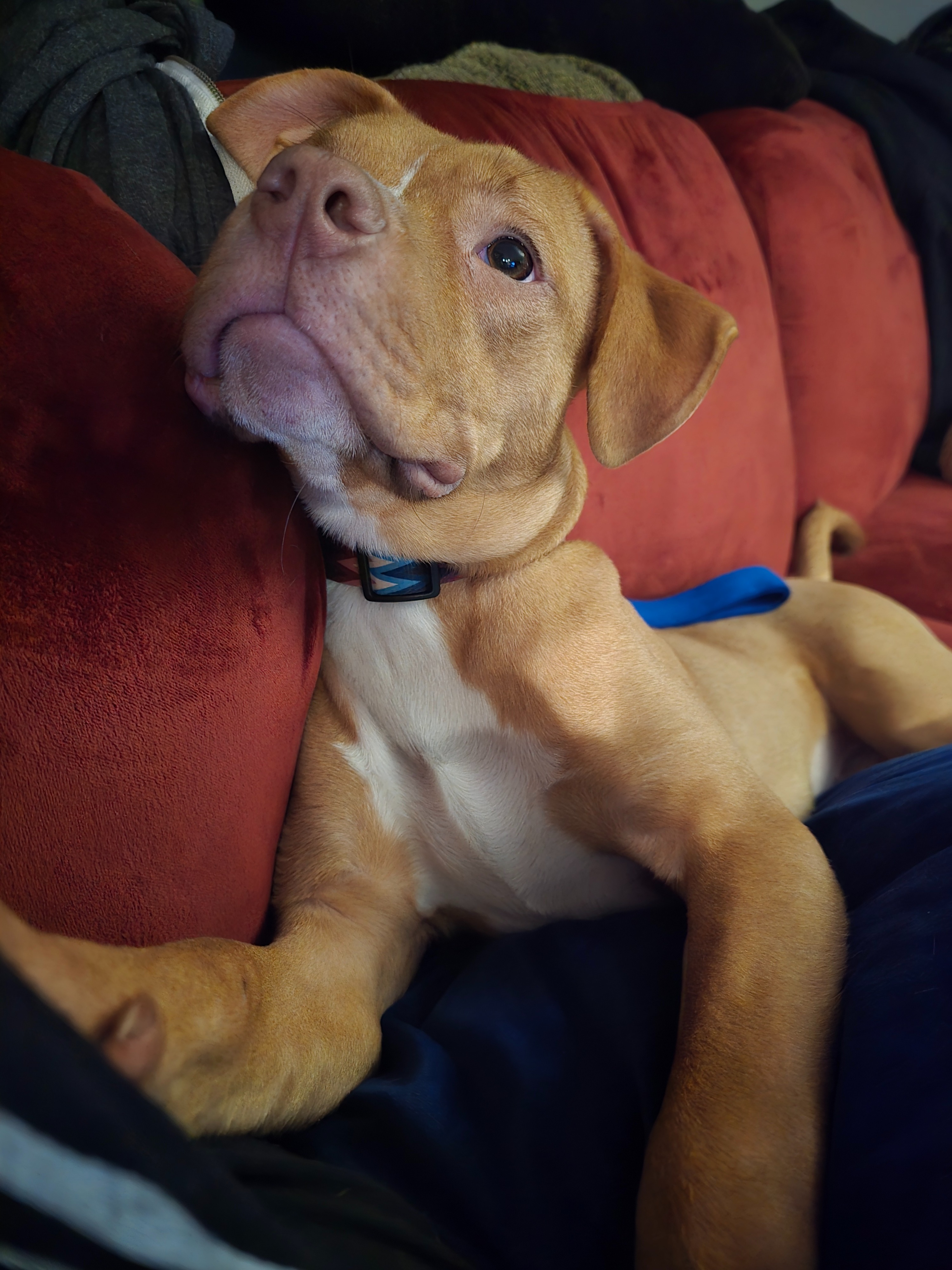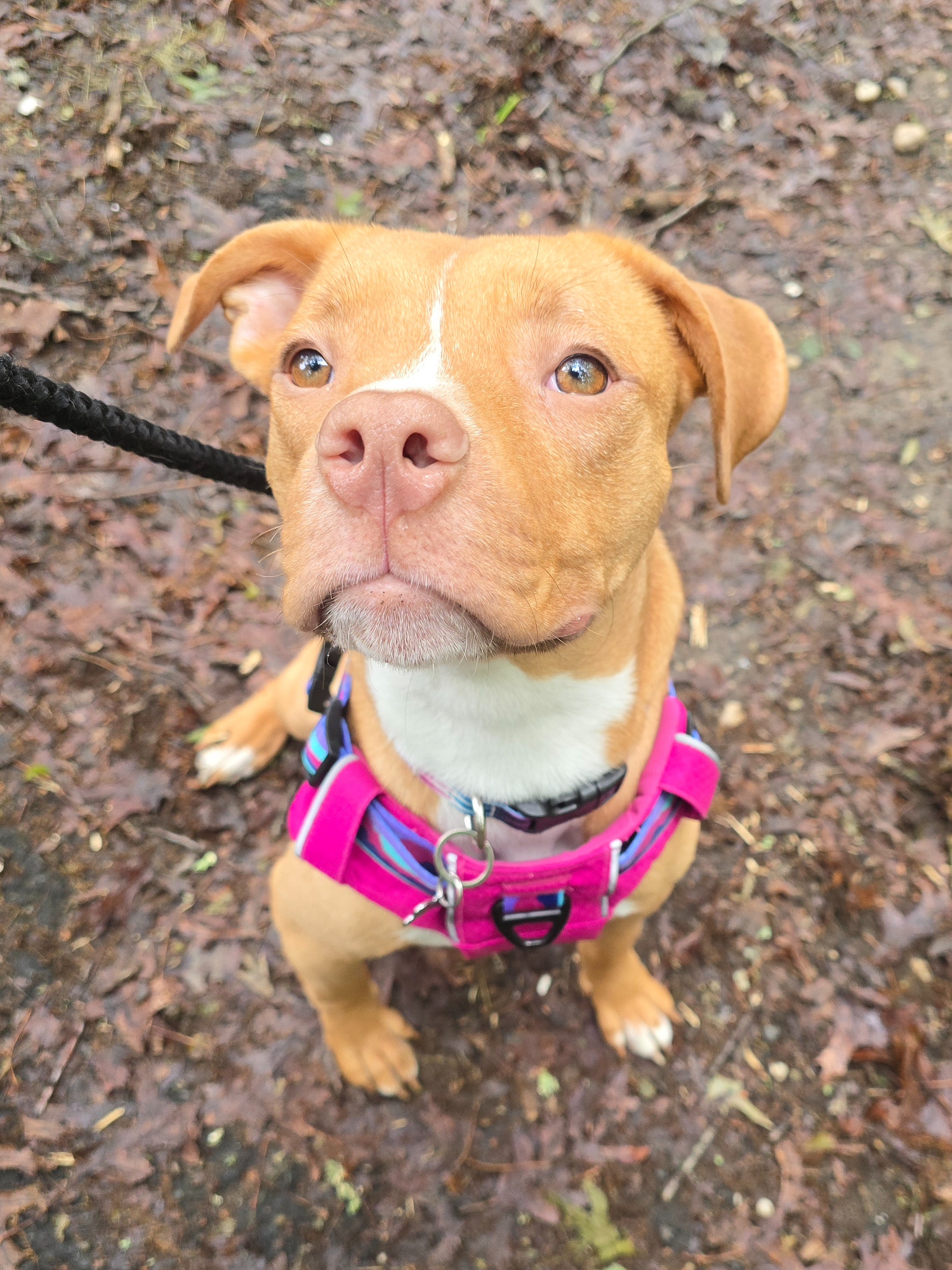 Fiona is a young dog who was rescued from a neglectful situation in Spring City, PA. She and two other dogs were found by animal control living in dangerous conditions, even stranded on a roof, before being brought to safety. After adopting Fiona, I quickly realized she was struggling to adjust to life as an indoor pet. She doesn’t indicate when she needs to go outside, frequently uses the bathroom inside, and sometimes rolls in or eats her own waste. Recently, she’s even started pooping next to me in bed while I’m sleeping. These behaviors are distressing for both of us, and I’m worried there may be underlying health issues contributing to her struggles.
