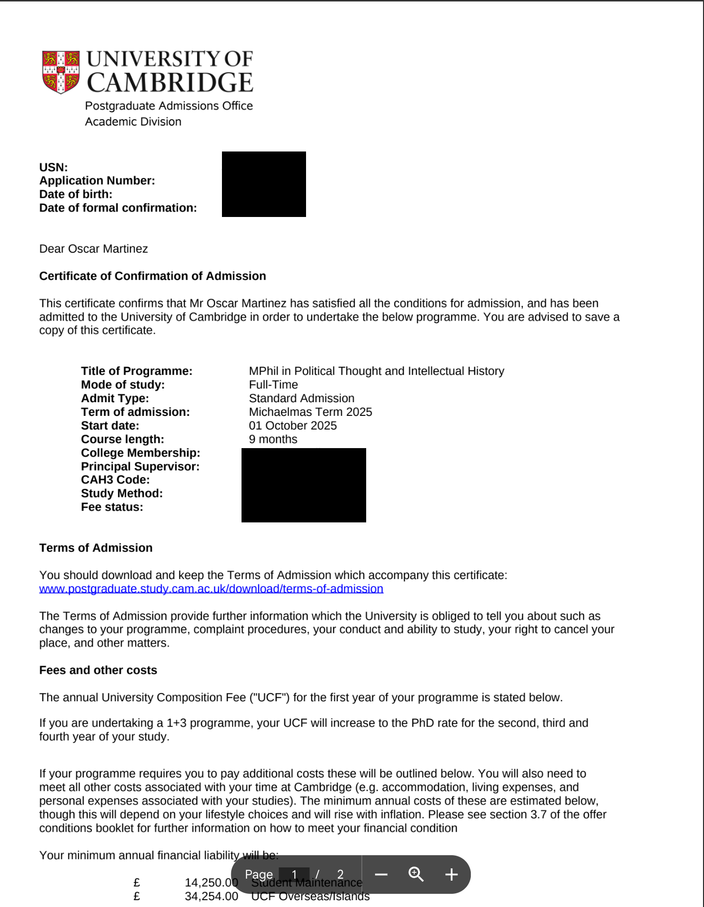 Thank you for helping me pursue my dreams at the University of Cambridge!